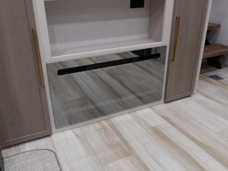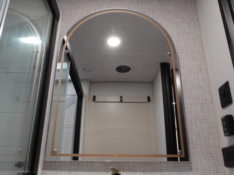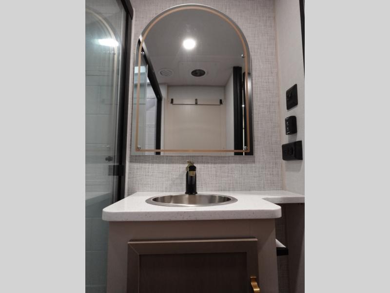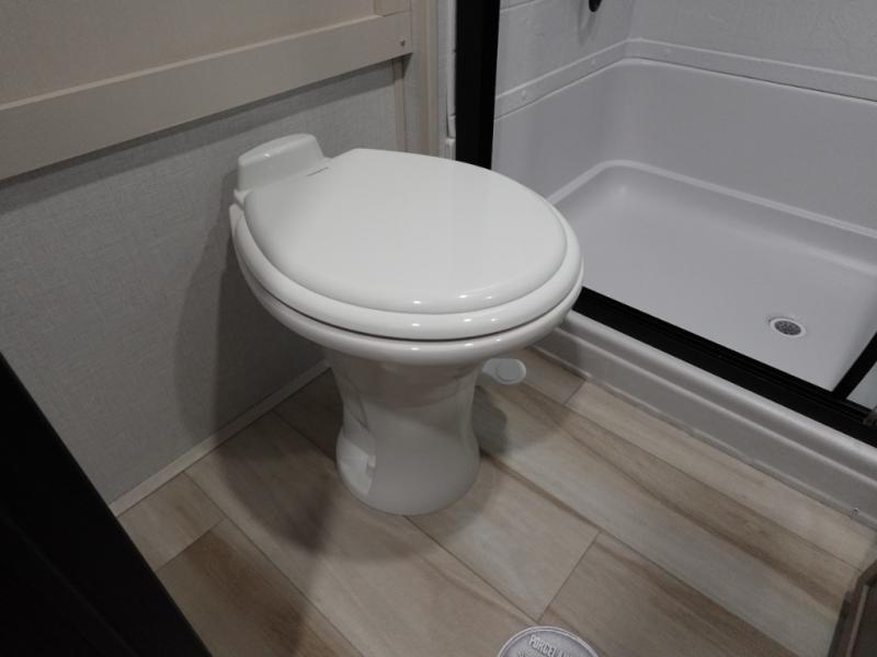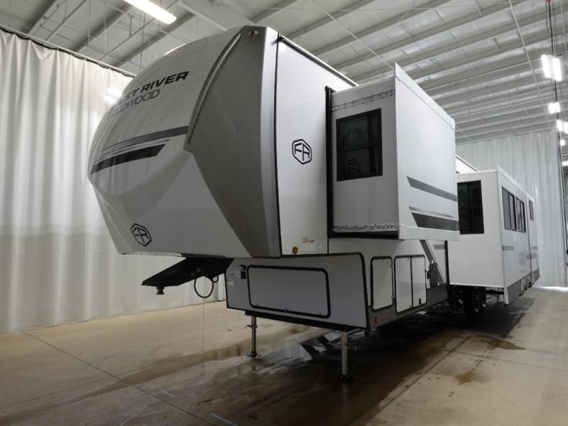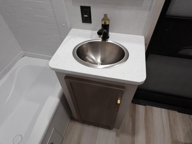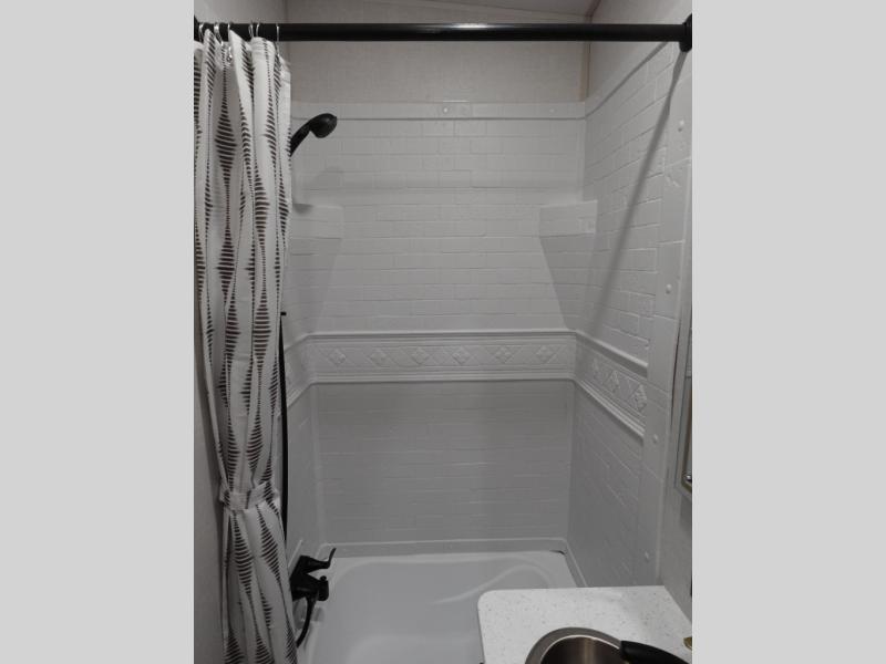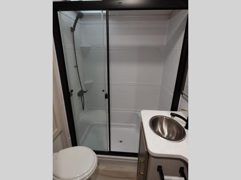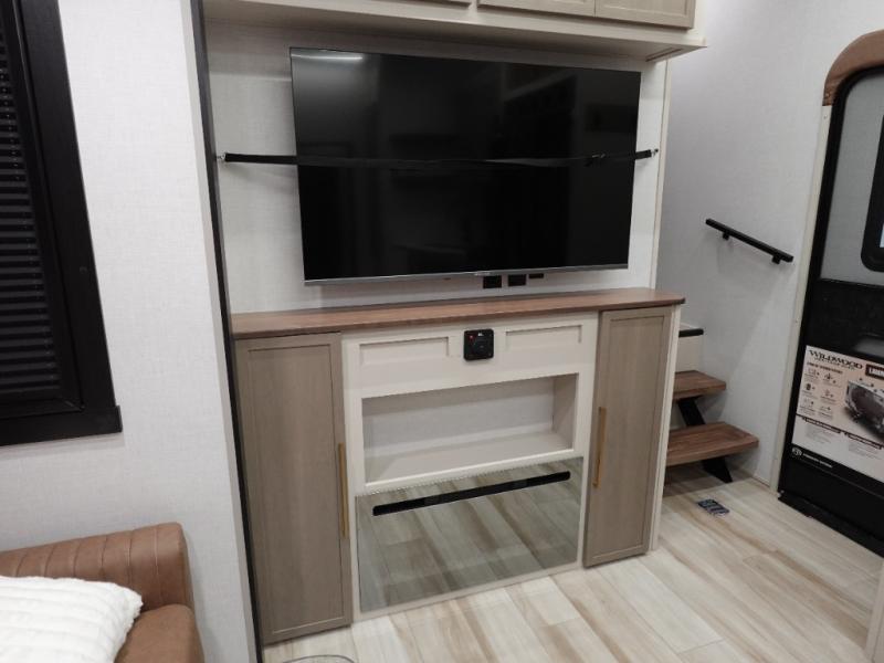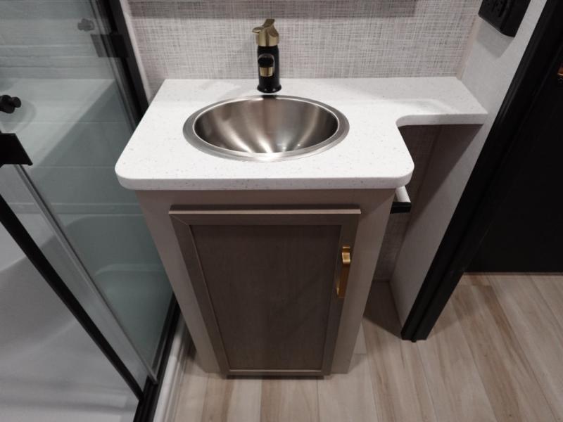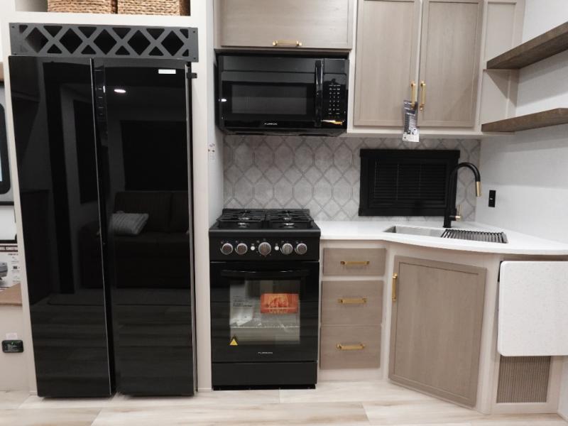 With any Wildwood Heritage Glen fifth wheel by Forest River, the quality construction, attention to detail and design along with a bright and welcoming interior allows you to relax in comfort with conveniences while exploring outdoors. The Summer Wind colored horizontal plank linoleum flooring is unique, beautiful and durable, and there are gold-accented faucets with stainless steel sinks in the bathrooms for added luxury. The Accessibelly underbelly with 12V tank heaters will help protect your unit from the elements, and the power stabilizer jacks and landing gear will make set-up a breeze. More features that provide convenience include the high-end solid surface countertops, an RV Airflow System that provides at least 25% better airflow, and solar prep for off-grid capabilities.