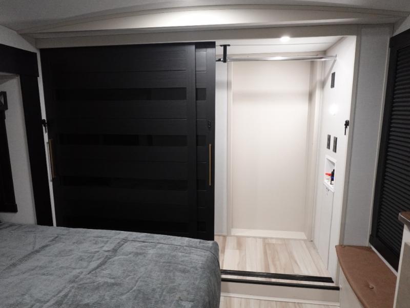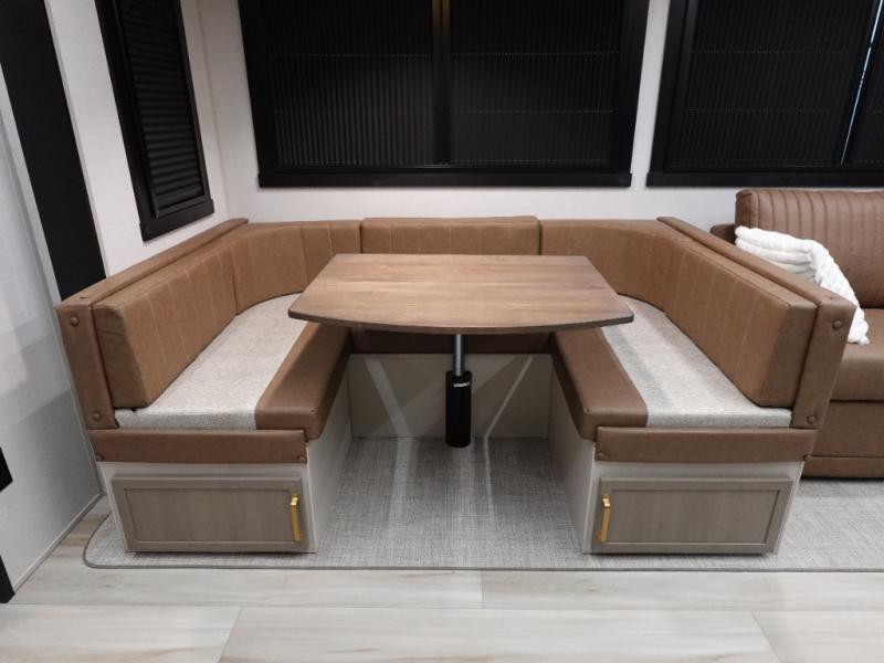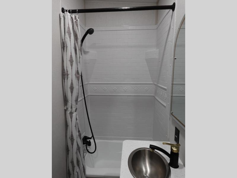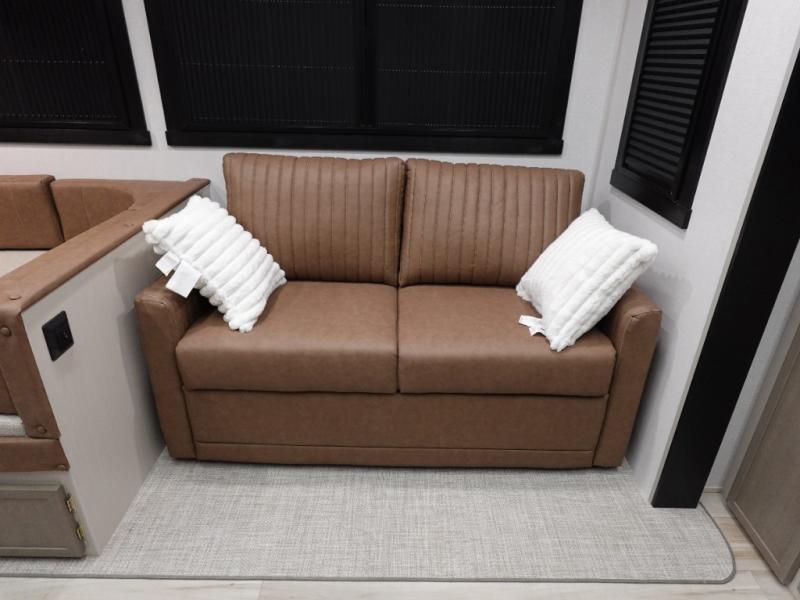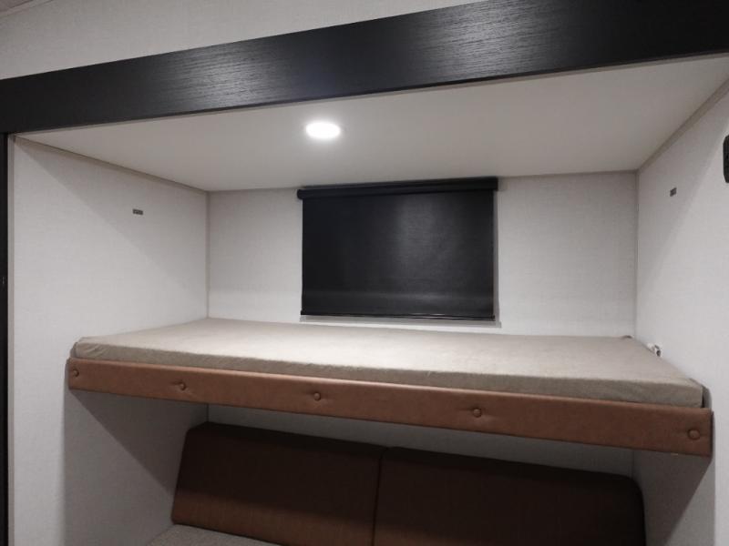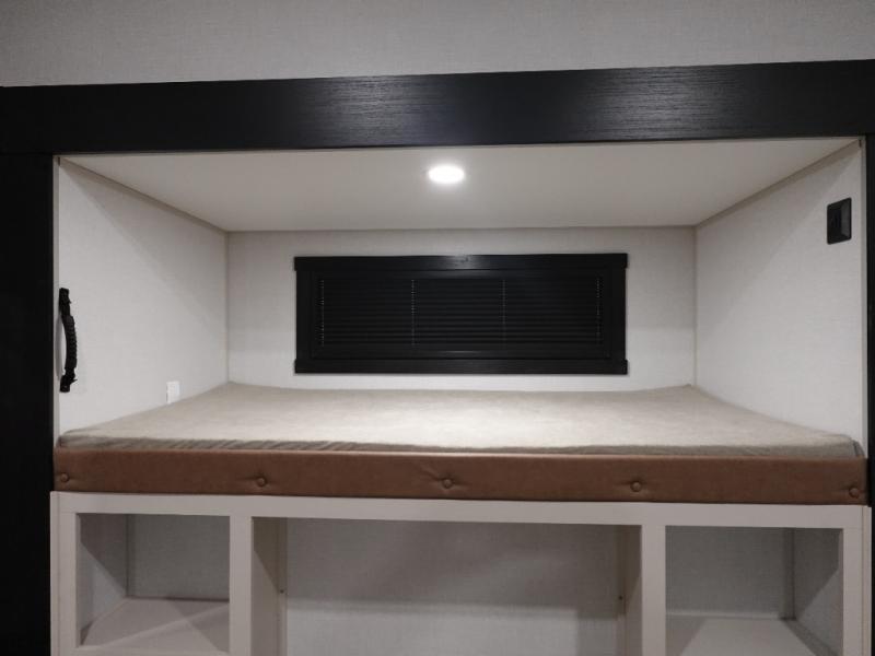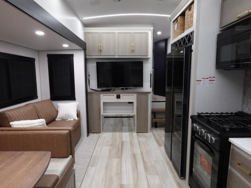 Not all fifth wheels are alike, and once you own this Wildwood Heritage Glen, you will understand! The rear entry into the second full bathroom allows the kids or your friends to enter and exit quickly to get back outside to the fun. They will also be able to shower and then enter their private bunkhouse that has two bunks, a convertible sofa bed, and two slides that offer lots of floor space to play. You will have your own oasis on the opposite side in the front private bedroom that has a custom king bed, a full-width wardrobe, and washer and dryer prep. The other full bathroom is only steps away from the main entrance and living area. The inside kitchen offers even more amenities, and the fourth slide provides a family U-shaped dinette and tri-fold sofa.