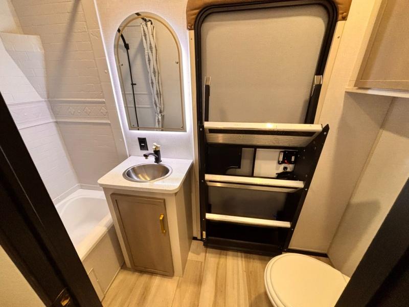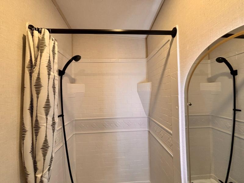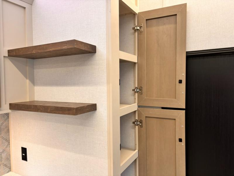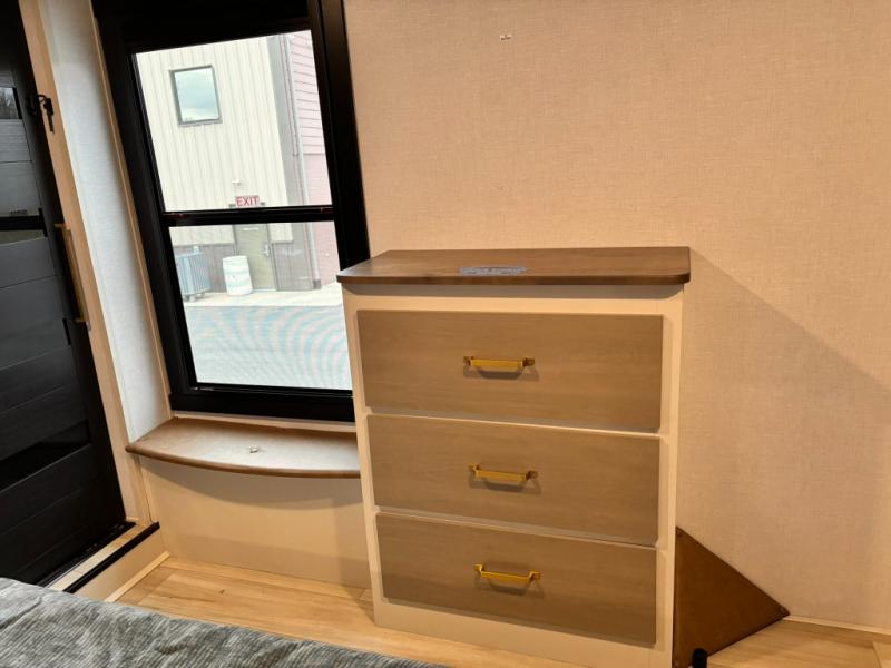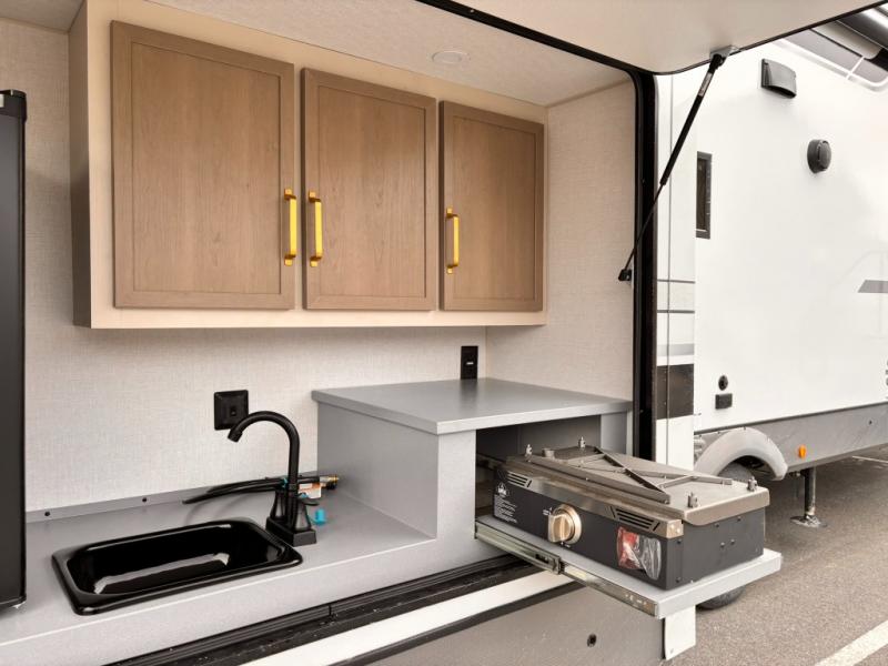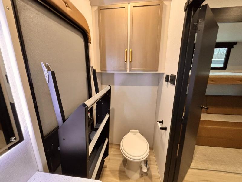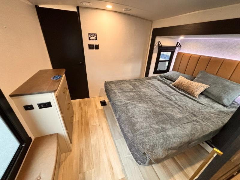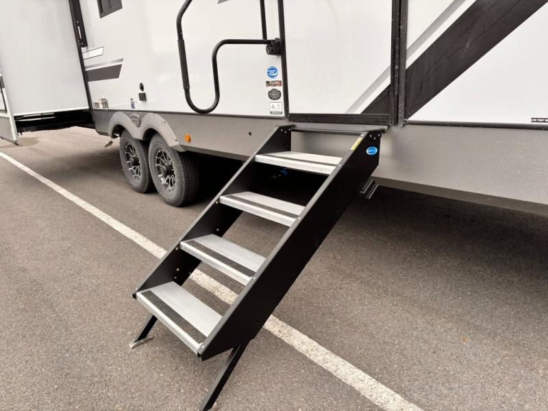 Not all fifth wheels are alike, and once you own this Wildwood Heritage Glen, you will understand! The rear entry into the second full bathroom allows the kids or your friends to enter and exit quickly to get back outside to the fun. They will also be able to shower and then enter their private bunkhouse that has two bunks, a convertible sofa bed, and two slides that offer lots of floor space to play. You will have your own oasis on the opposite side in the front private bedroom that has a custom king bed, a full-width wardrobe, and washer and dryer prep. The other full bathroom is only steps away from the main entrance and living area. The inside kitchen offers even more amenities, and the fourth slide provides a family U-shaped dinette and tri-fold sofa.