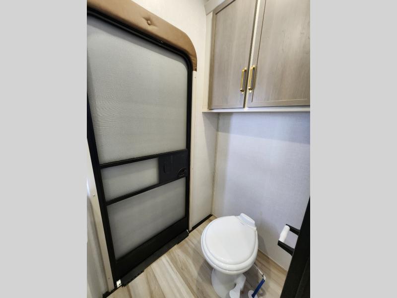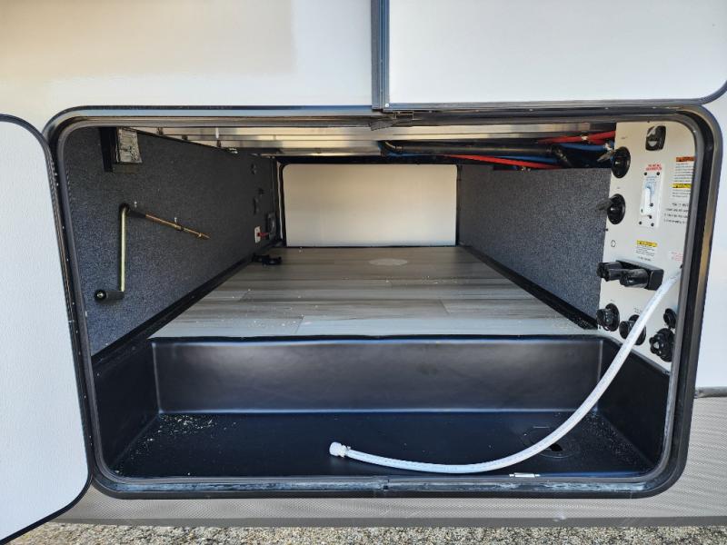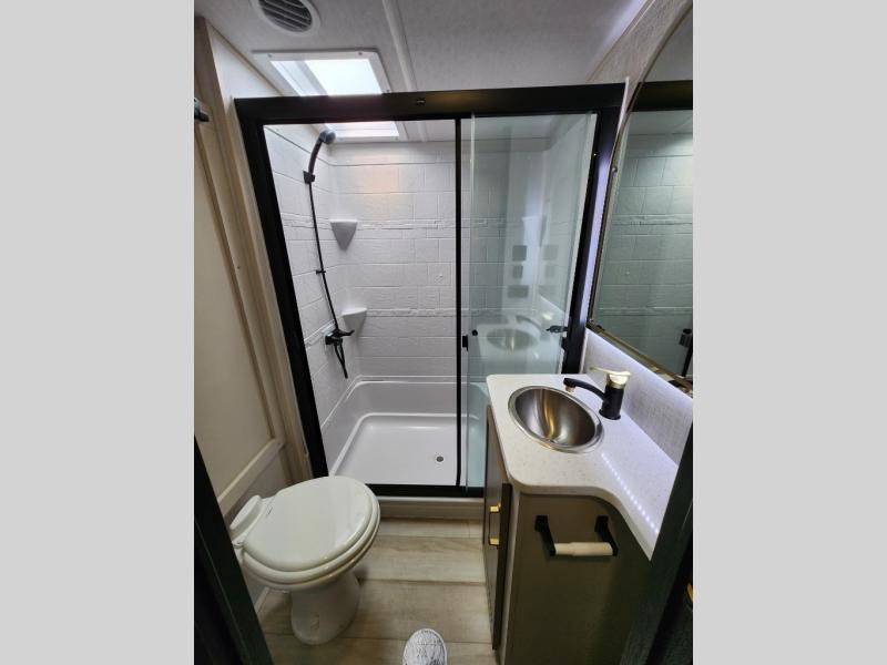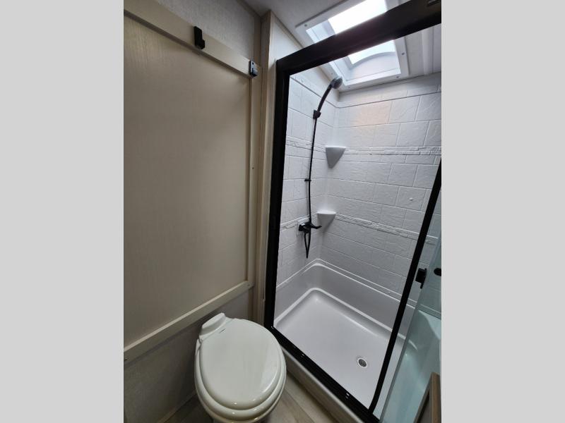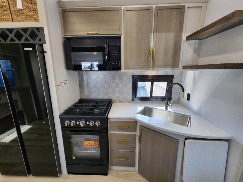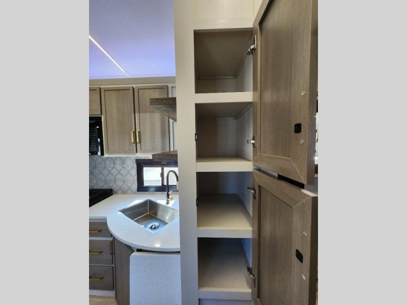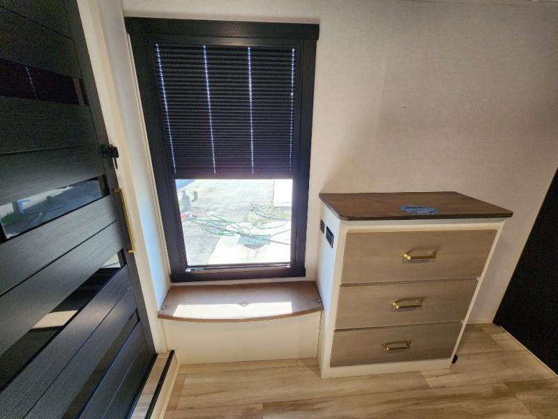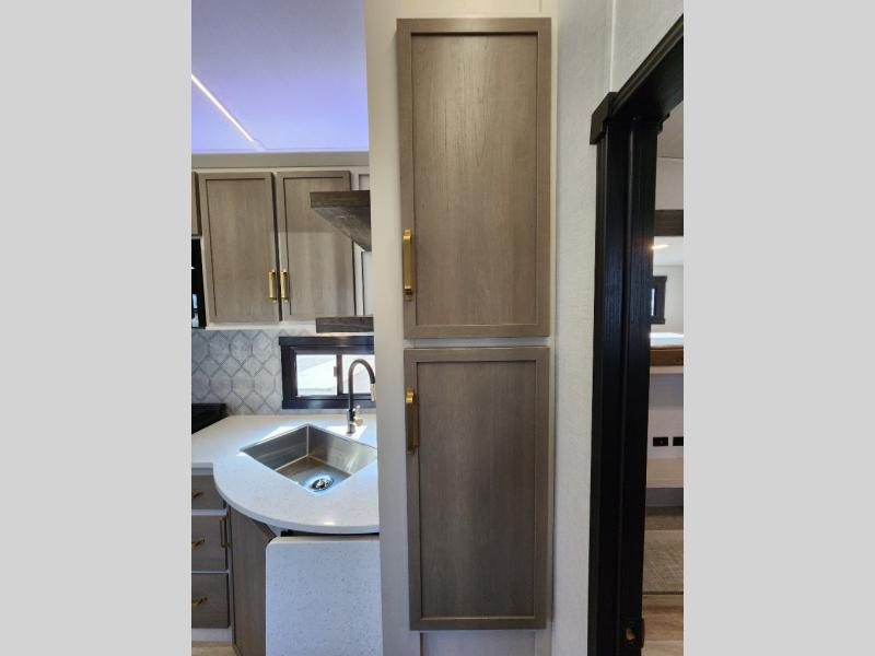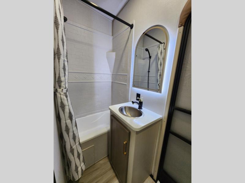 With any Wildwood Heritage Glen fifth wheel by Forest River, the quality construction, attention to detail and design along with a bright and welcoming interior allows you to relax in comfort with conveniences while exploring outdoors. The Summer Wind colored horizontal plank linoleum flooring is unique, beautiful and durable, and there are gold-accented faucets with stainless steel sinks in the bathrooms for added luxury. The Accessibelly underbelly with 12V tank heaters will help protect your unit from the elements, and the power stabilizer jacks and landing gear will make set-up a breeze. More features that provide convenience include the high-end solid surface countertops, an RV Airflow System that provides at least 25% better airflow, and solar prep for off-grid capabilities.