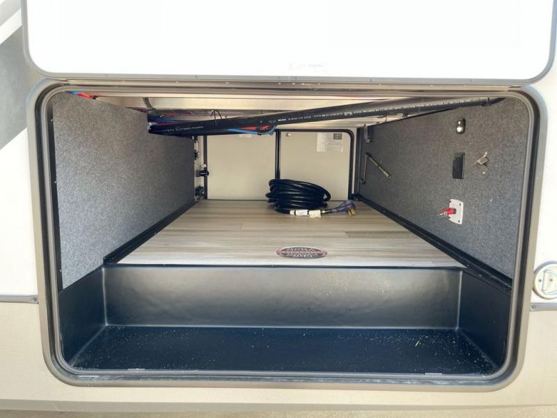 With any Wildwood Heritage Glen fifth wheel by Forest River, the quality construction, attention to detail and design along with a bright and welcoming interior allows you to relax in comfort with conveniences while exploring outdoors. The Summer Wind colored horizontal plank linoleum flooring is unique, beautiful and durable, and there are gold-accented faucets with stainless steel sinks in the bathrooms for added luxury. The Accessibelly underbelly with 12V tank heaters will help protect your unit from the elements, and the power stabilizer jacks and landing gear will make set-up a breeze. More features that provide convenience include the high-end solid surface countertops, an RV Airflow System that provides at least 25% better airflow, and solar prep for off-grid capabilities.