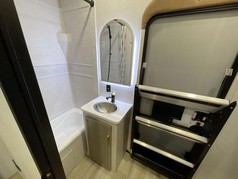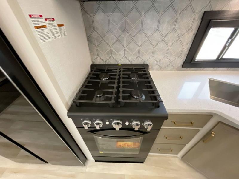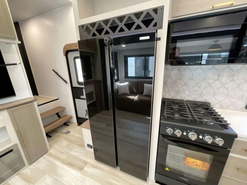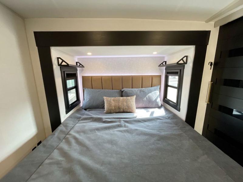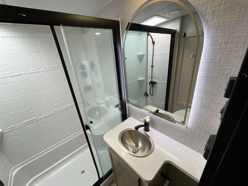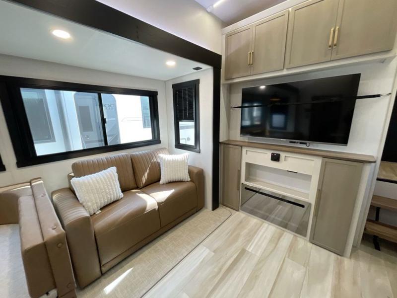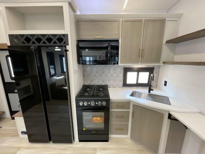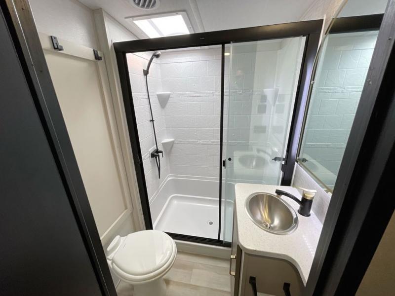 Not all fifth wheels are alike, and once you own this Wildwood Heritage Glen, you will understand! The rear entry into the second full bathroom allows the kids or your friends to enter and exit quickly to get back outside to the fun. They will also be able to shower and then enter their private bunkhouse that has two bunks, a convertible sofa bed, and two slides that offer lots of floor space to play. You will have your own oasis on the opposite side in the front private bedroom that has a custom king bed, a full-width wardrobe, and washer and dryer prep. The other full bathroom is only steps away from the main entrance and living area. The inside kitchen offers even more amenities, and the fourth slide provides a family U-shaped dinette and tri-fold sofa.