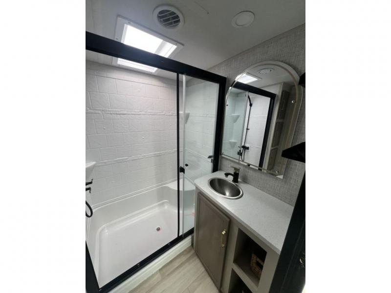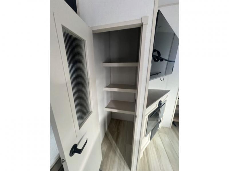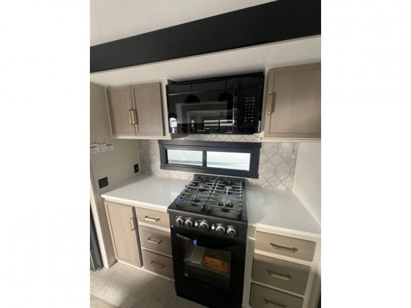 With any Wildwood Heritage Glen fifth wheel by Forest River, the quality construction, attention to detail and design along with a bright and welcoming interior allows you to relax in comfort with conveniences while exploring outdoors. The Summer Wind colored horizontal plank linoleum flooring is unique, beautiful and durable, and there are gold-accented faucets with stainless steel sinks in the bathrooms for added luxury. The Accessibelly underbelly with 12V tank heaters will help protect your unit from the elements, and the power stabilizer jacks and landing gear will make set-up a breeze. More features that provide convenience include the high-end solid surface countertops, an RV Airflow System that provides at least 25% better airflow, and solar prep for off-grid capabilities.