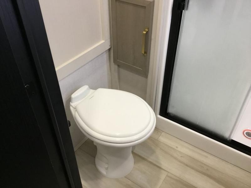 With any Wildwood Heritage Glen fifth wheel by Forest River, the quality construction, attention to detail and design along with a bright and welcoming interior allows you to relax in comfort with conveniences while exploring outdoors. The Summer Wind colored horizontal plank linoleum flooring is unique, beautiful and durable, and there are gold-accented faucets with stainless steel sinks in the bathrooms for added luxury. The Accessibelly underbelly with 12V tank heaters will help protect your unit from the elements, and the power stabilizer jacks and landing gear will make set-up a breeze. More features that provide convenience include the high-end solid surface countertops, an RV Airflow System that provides at least 25% better airflow, and solar prep for off-grid capabilities.