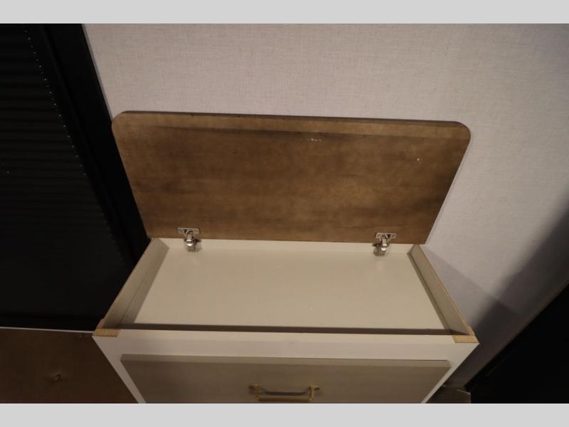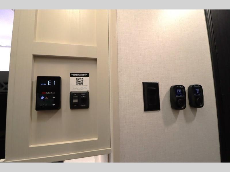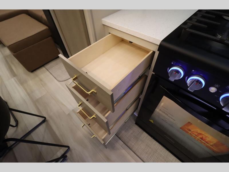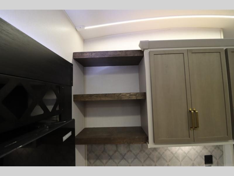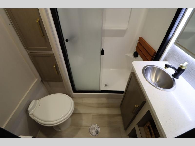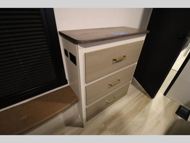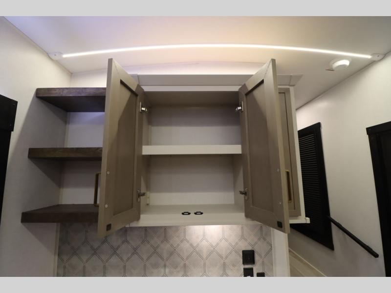 With any Wildwood Heritage Glen fifth wheel by Forest River, the quality construction, attention to detail and design along with a bright and welcoming interior allows you to relax in comfort with conveniences while exploring outdoors. The Summer Wind colored horizontal plank linoleum flooring is unique, beautiful and durable, and there are gold-accented faucets with stainless steel sinks in the bathrooms for added luxury. The Accessibelly underbelly with 12V tank heaters will help protect your unit from the elements, and the power stabilizer jacks and landing gear will make set-up a breeze. More features that provide convenience include the high-end solid surface countertops, an RV Airflow System that provides at least 25% better airflow, and solar prep for off-grid capabilities.