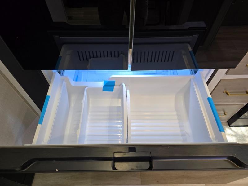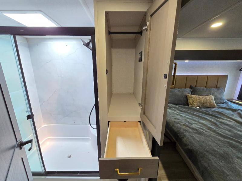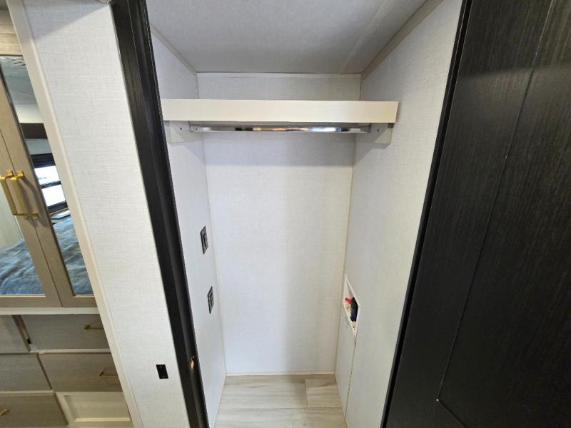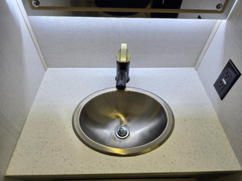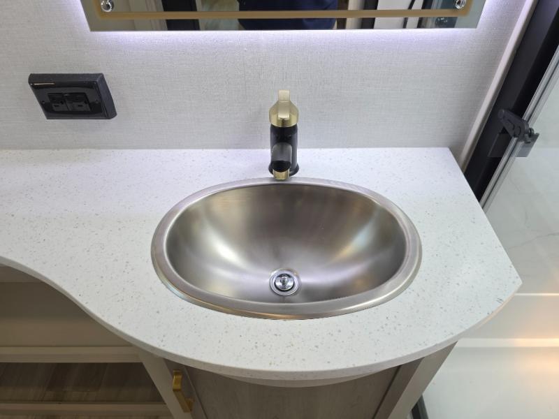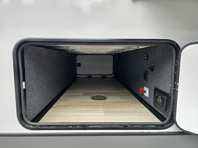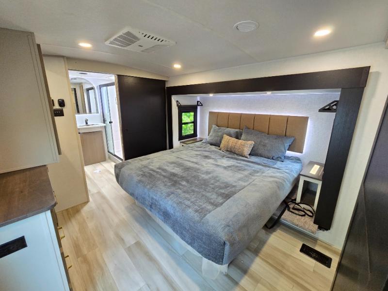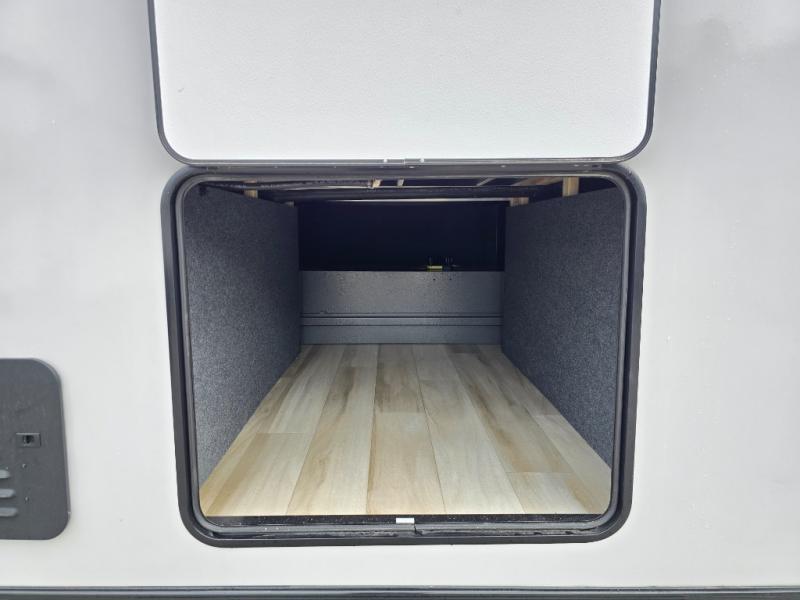 Each Wildwood Heritage Glen Elite Series fifth wheel by Forest River is constructed with vacuum bonded "Aluma Frame" sidewalls and floor, block foam insulation, and an AccessiBelly underbelly with 12V tank heaters on all holding tanks to help extend your camping season. There is an exterior docking station with hot and cold water, along with power stabilizer jacks and landing gear, and Goodyear radial tires with black accented rims. There is also an in-line water filtration system, an RV Airflow system, and an extra large pass-through storage with Slam Latch baggage doors and magnetic catches for hassle-free packing. You will love the high-end solid surface countertops inside, along with gold-accented faucets with stainless steel sinks in all bathrooms, and European oak colored horizontal plank linoleum flooring that is both stylish and easy to keep clean!