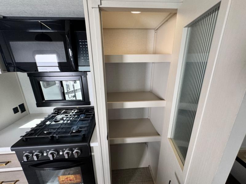 Invite the grandkids or your neighbor friends for your next camping trip in this Wildwood Heritage Glen Elite fifth wheel that features a front entertainment center and living area. Your guests will love the two tri-fold sofas within dual opposing slides to make the room their own. You'll also enjoy theatre seats and a fireplace for an even more at-home feel. The large pantry in the kitchen is very handy as well as the breakfast bar with swivel bar stools. This unit also includes a full and half bath for your convenience, and a king bed with Versa-Tilt on an Elite extra-wide bed slide in the private bedroom. There is abundant storage with multiple pass-through compartments included, so you don't have to leave any of your larger gear behind. Outdoors, you can also enjoy the 20' awning, the strut-assisted steps when entering and exiting, and the Elite outdoor bar and entertainment center which includes a 32" TV, a griddle, and a refrigerator.