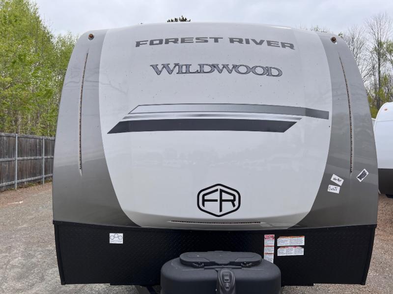 The Wildwood Heritage Glen Hyper-Lyte travel trailer by Forest River offers stability with a wide stance axle system, easy setup with a power tongue jack with an LED docking light, and safe entry with the Step Above aluminum entry steps. The interior includes Temple Cherry cabinetry with matte gold hardware, hidden hinges on the cabinet doors, and a residential single bowl undermount sink. You will also find a back-up camera prep and solar prep, an outdoor shower, Maxxis radial tires, and many more exterior conveniences.