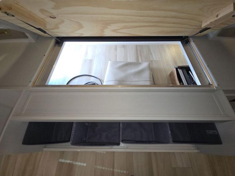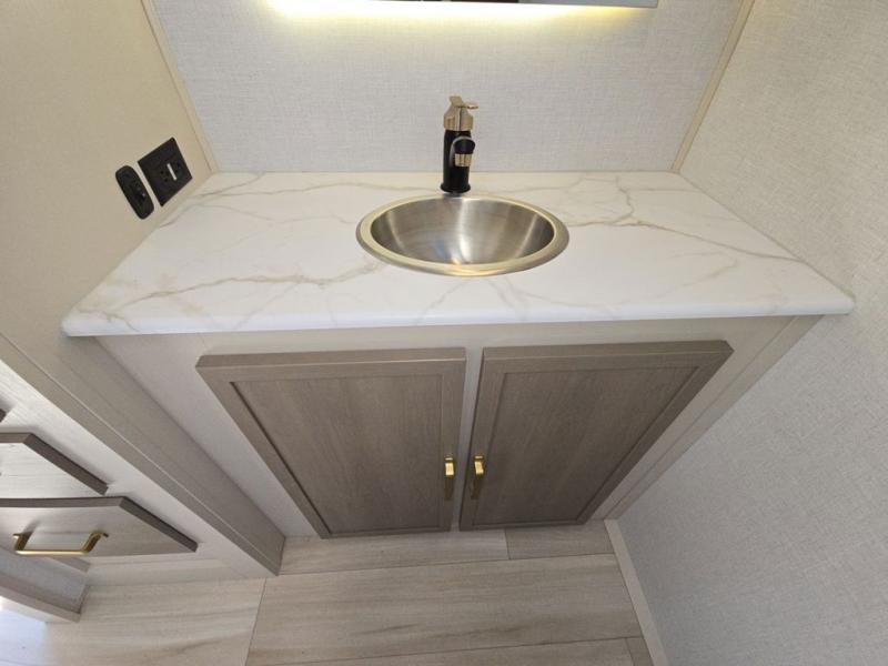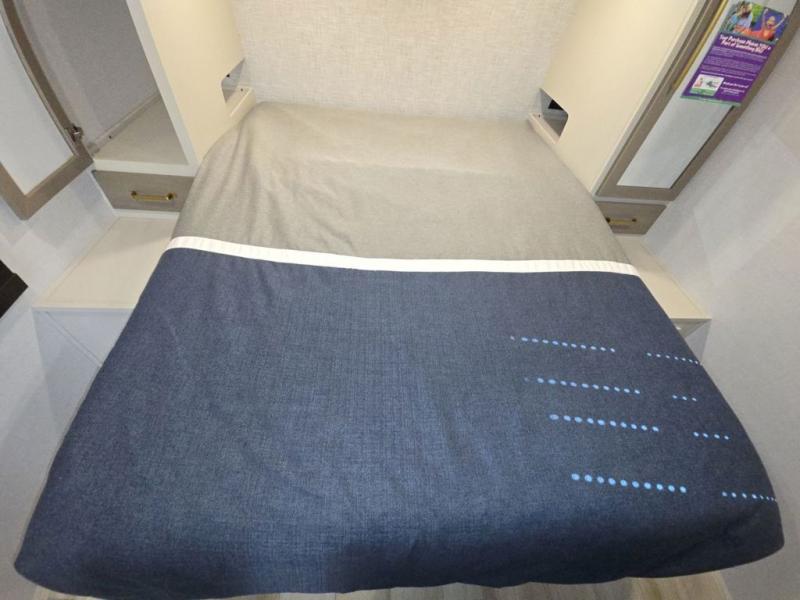 Whether it's a couples night or family night, you can enjoy the spacious living and kitchen area thanks to the large slide out. Grab your favorite snacks from the hidden storage behind the swing-open entertainment center and head to the booth dinette and/or the theater seats with cupholders. You will be able to easily whip up your best meals and clean up even easier with the L-shaped countertop with an extension. The front private bedroom features a queen bed with Versa Tilt to get a good night's rest with wardrobes on either side to keep the room tidy, and the rear bathroom is spacious with a sliding door and two linen closets!