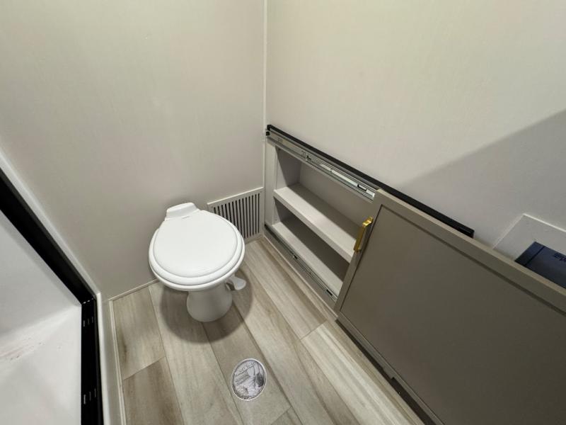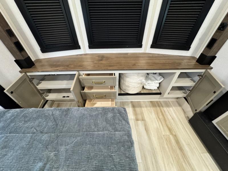 Constructed with vacuum-bonded laminated sidewalls, block foam insulation, and aluminum-framed floors with 5/8" tongue-and-groove flooring, the ROOST43 is as durable as it is stylish. The premium Alley Grey high-gloss gel coat fiberglass exterior and flat-pitched roof ensure longevity and easy maintenance, while the AccessiBelly underbelly with 12V tank heaters extends your camping season. Prepped for a roof-mounted solar panel and charge controller, and featuring a Race Track A/C duct system for maximum cooling, this 44-foot-long, 15,364-pound RV (dry weight) redefines luxury camping. Whether you're parking it at a scenic destination or towing it with a 3/4-ton or 1-ton dually truck, the 2025 Wildwood Heritage Glen ROOST43 offers the best of both worlds—unmatched space and the freedom to roam.