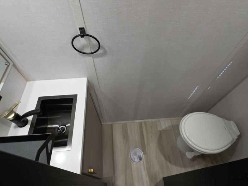 The Wildwood Heritage Glen ROOST fifth wheels resemble a destination trailer that will be giving you residential vibes! The premium Alley Grey high-gloss gel coat fiberglass sidewalls are ultra sleek, and the flat pitched roof sheds water to the off-door side for added comfort. A Race Track A/C duct system provides maximum cooling, and the AccessiBelly underbelly with 12V tank heaters on all holding tanks will help extend your camping season. There are high-end solid surface and maple-stained wood countertops inside, along with residential-inspired wood door casings, and 6' 8" clearance in all rooms, excluding lofts. Additional features include a Gun Metal grey kitchen sink, backlit mirrors in the bathrooms, motion sensor lights by the spiral stair cases, and back up camera prep if you want the option to make parking easier than ever.