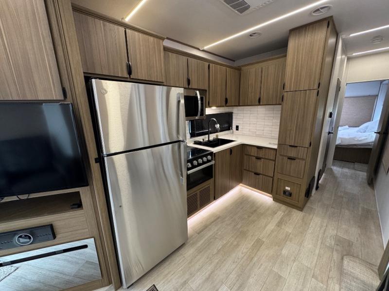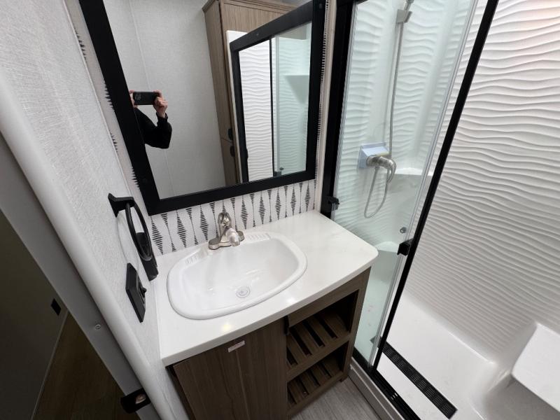 You just can't beat the Forest River Wildwood Lodge destination trailer! These trailers create the perfect camping destination in and of themselves. There is a new retro/metal redesign that is sure to turn heads at the campground, and the heated and enclosed Accessibelly provides added protection against the elements. Each model includes stainless steel kitchen appliances, a central vacuum with a sweep attachment, a Serta mattress, and kitchen backsplash to name a few comforts. Additional stand-out features include TFL cabinet doors, LED "Blade Lighting' under the awning, stylish roller shades, plus Lippert On-The-Go ladder prep for the option to add a ladder.