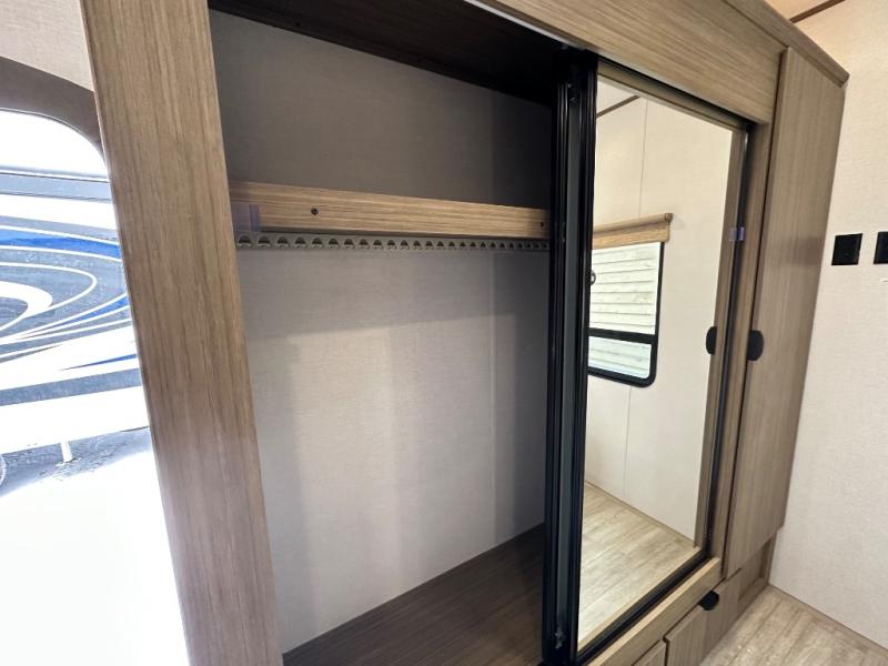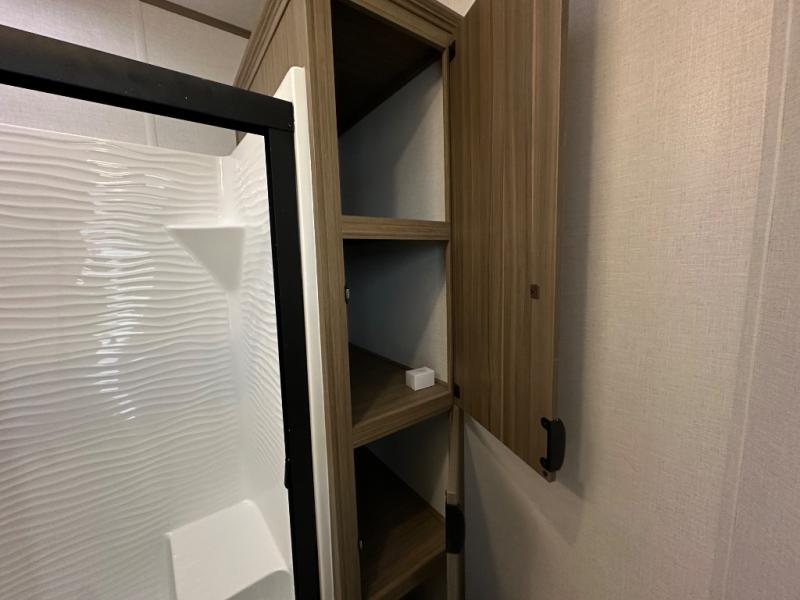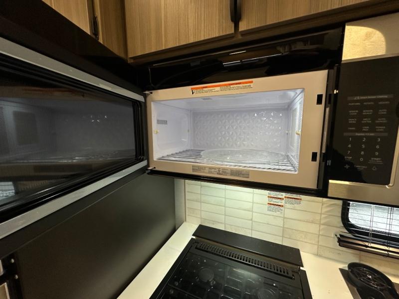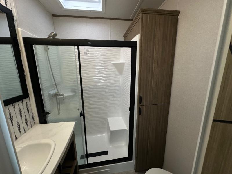 With plenty of space to stretch out and make memories, this Wildwood Lodge destination trailer is just what you need! The full bathroom is loaded with helpful amenities, like a 50" walk-in shower, skylight, and linen closet, and the bedroom is also filled with convenience as it contains a king bed with Versa-Tilt, USB ports, a large closet, and the second exterior entry door. Out in the kitchen, you will find everything that you need to create family-style dinners, and the large slide is going to allow you to have plenty of space to work freely in the kitchen.