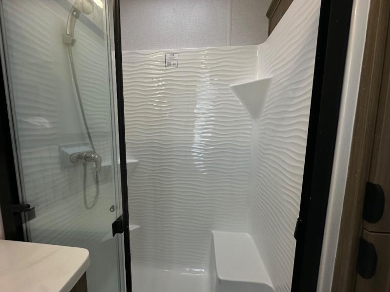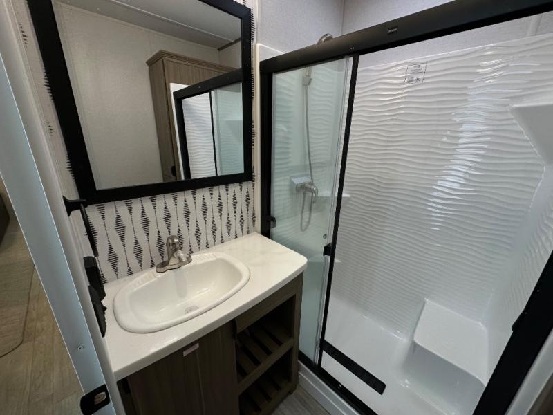 You just can't beat the Forest River Wildwood Lodge destination trailer! These trailers create the perfect camping destination in and of themselves. The 8' interior ceiling is accommodating even for the tallest person in your family, and the extra large window package in the main slide includes cross ventilation to let the breeze flow through. The upgraded designer furniture is going to keep your family comfortable as they relax, and the heated/enclosed accessi-belly is a feature that will allow you to camp in cooler weather conditions. Each model includes stainless steel kitchen appliances, a central vacuum with a sweep attachment, a Serta mattress, and kitchen backsplash to name a few comforts. Some new features include solid wood core cabinet doors, an upgraded shower head, a 60K tankless water heater, upgraded slide out fascia, and more!
