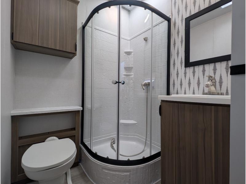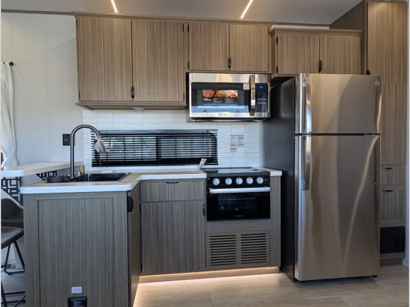 You just can't beat the Forest River Wildwood Lodge destination trailer! These trailers create the perfect camping destination in and of themselves. There is a new retro/metal redesign that is sure to turn heads at the campground, and the heated and enclosed Accessibelly provides added protection against the elements. Each model includes stainless steel kitchen appliances, a central vacuum with a sweep attachment, a Serta mattress, and kitchen backsplash to name a few comforts. Additional stand-out features include TFL cabinet doors, LED "Blade Lighting' under the awning, stylish roller shades, plus Lippert On-The-Go ladder prep for the option to add a ladder.