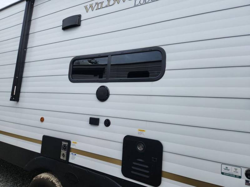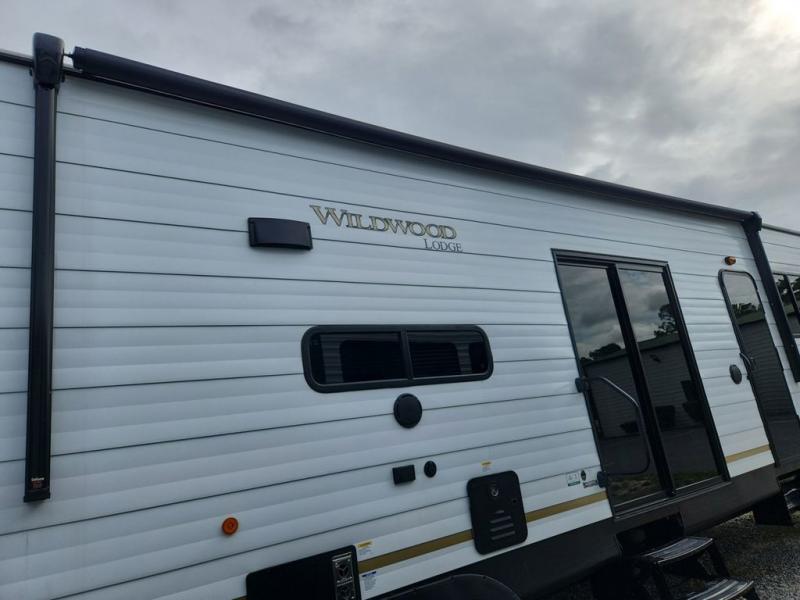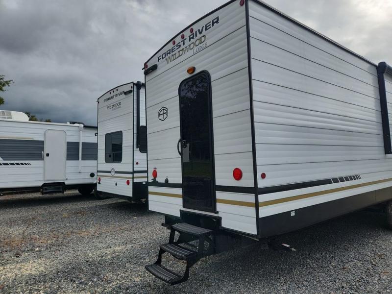You just can't beat the Forest River Wildwood Lodge destination trailer! These trailers create the perfect camping destination in and of themselves. There is a new retro/metal redesign that is sure to turn heads at the campground, and the heated and enclosed Accessibelly provides added protection against the elements. Each model includes stainless steel kitchen appliances, a central vacuum with a sweep attachment, a Serta mattress, and kitchen backsplash to name a few comforts. Additional stand-out features include TFL cabinet doors, LED "Blade Lighting' under the awning, stylish roller shades, plus Lippert On-The-Go ladder prep for the option to add a ladder.