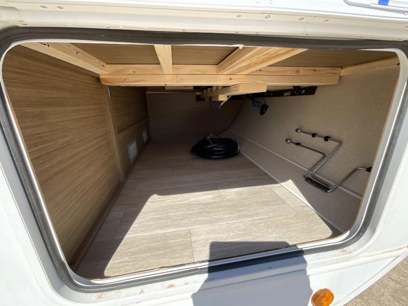 The perfect couple's coach with a view! This Wildwood View features a kitchen island and five bar stools for dining and prep space. A sectional sofa across the back of the unit provides ample seating to relax and enjoy a good book or the entertainment center. Behind the entertainment center, you will find hidden storage space with shelves so everything can be tucked out of sight, and an oversized refrigerator will provide enough space for your perishables while you are on vacation as well. A full bath is conveniently located near the main entry featuring StepAbove entry steps leading inside. The bath provides a walk-in shower, vanity with sink, toilet, and linen storage. In the private front bedroom, a Versa-Tilt custom king bed will allow you a relaxing and comfortable night's rest, and once again, a great view out the dual opposing windows. On the outside, an awning offers additional living space protected from the elements, and a spacious pass-through storage compartment will allow you to stow away your camp chairs and outdoor equipment and games easily for transport.