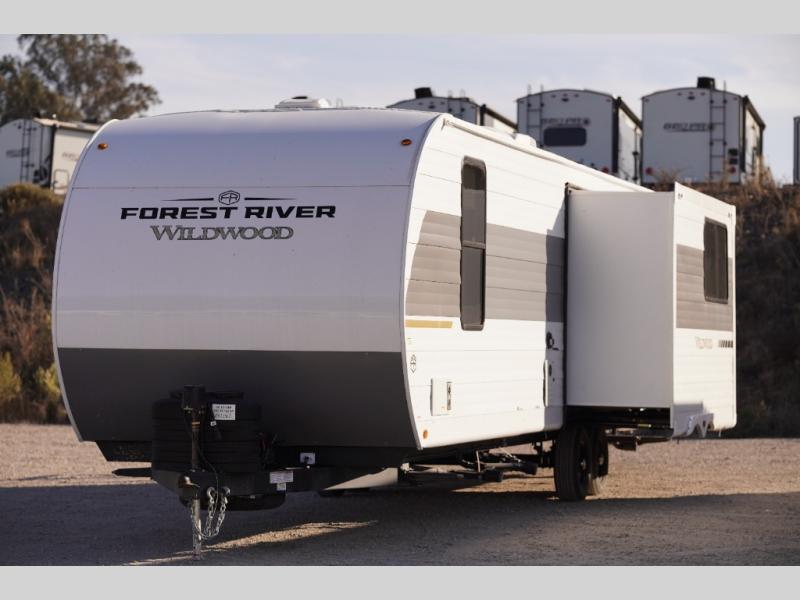 The Wildwood travel trailers are packed with hassle-free camping amenities! There are a variety of floorplans to choose from between three different regions. The heated and enclosed Accessibelly will help protect against the elements and debris during transport, and the exterior retro/metal redesign is sure to be eye-catching! There are stylish roller shades inside, along with updated backsplash, elegant curtain rods and curtains, plus many more interior comforts! Choose a Wildwood travel trailer today for quality and value!