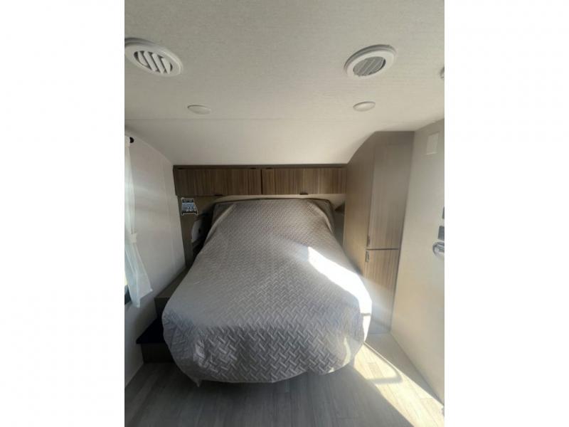 This Wildwood X-Lite travel trailer is a lightweight unit that offers you a spacious rear bathroom including a vanity with a medicine cabinet above, a walk-in radius shower, and additional mirrored linen storage for your towels and things. You will enjoy sleeping on a king-size bed each night, and the booth dinette is another place to relax and enjoy a meal, a card game, or a good book with a hot cup of coffee. The fully-equipped kitchen lets you create meals each day, and the oversized refrigerator will keep all your perishables fresh!