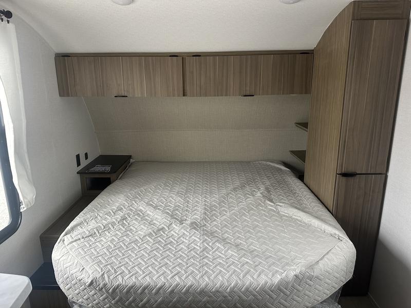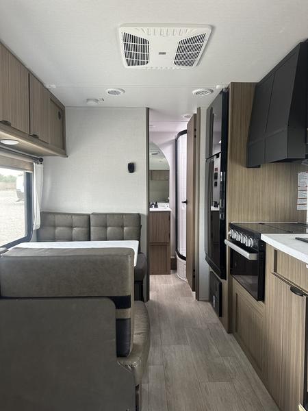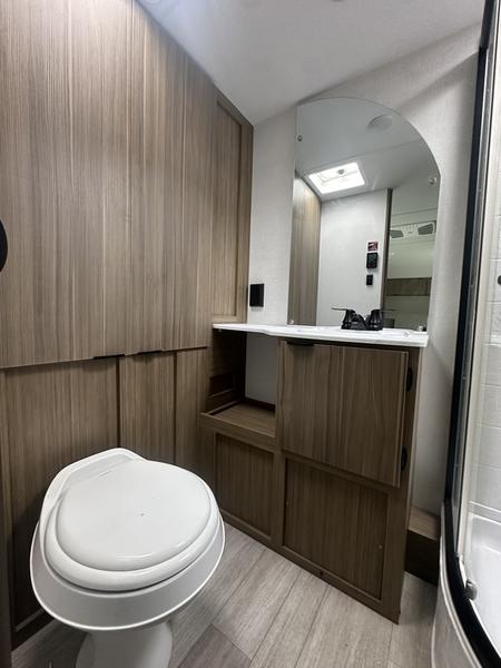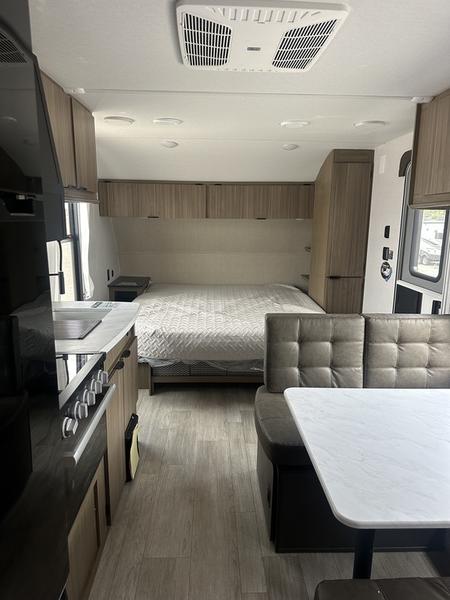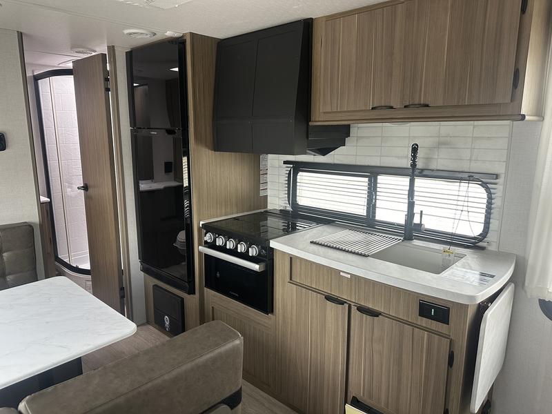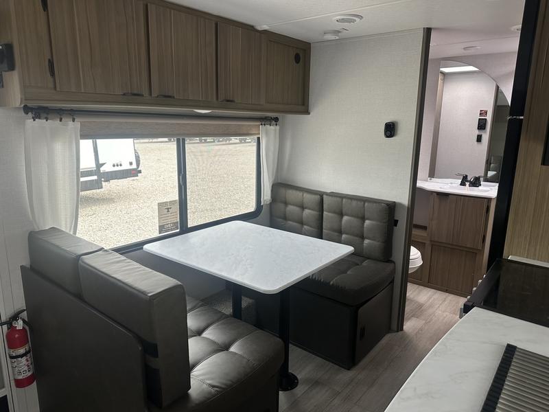 This Wildwood X-Lite travel trailer is a lightweight unit that offers you a spacious rear bathroom including a vanity with a medicine cabinet above, a walk-in radius shower, and additional mirrored linen storage for your towels and things. You will enjoy sleeping on a king-size bed each night, and the booth dinette is another place to relax and enjoy a meal, a card game, or a good book with a hot cup of coffee. The fully-equipped kitchen lets you create meals each day, and the oversized refrigerator will keep all your perishables fresh!
