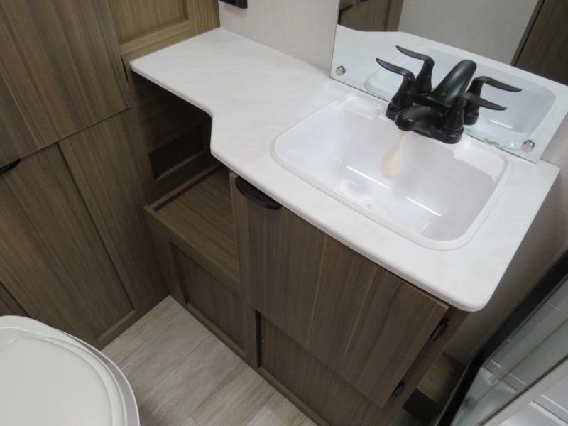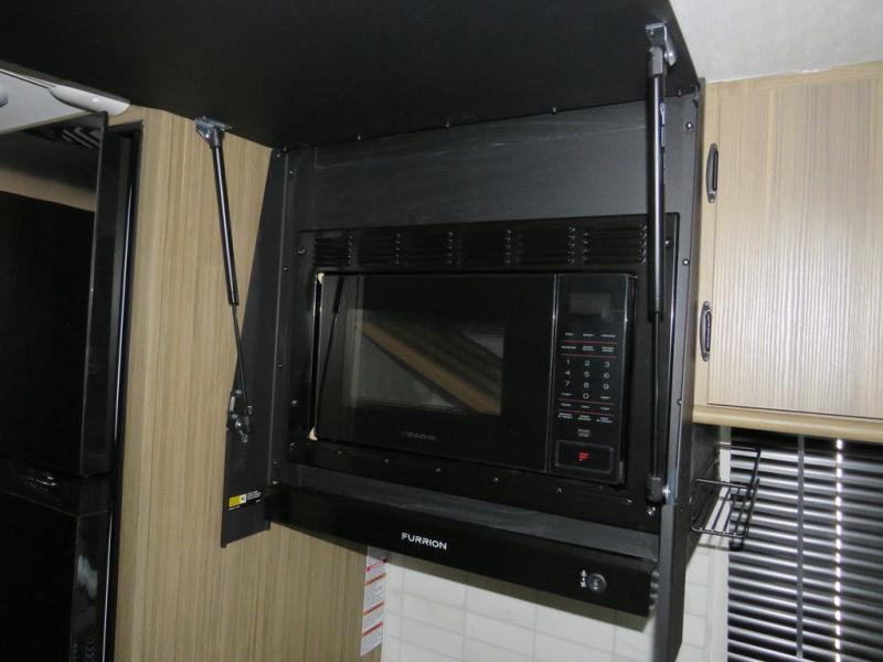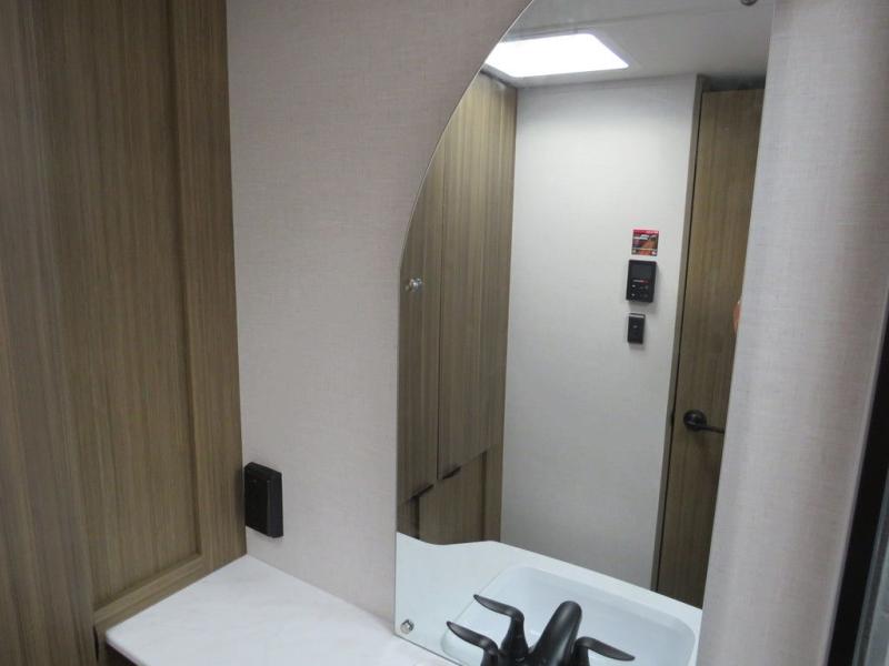 This Platinum Edition Wildwood X-Lite travel trailer is a lightweight unit that offers you a spacious rear bathroom including a vanity with a medicine cabinet above, a walk-in radius shower, and additional mirrored linen storage for your towels and things. You will enjoy sleeping on a king-size bed each night, and the booth dinette is another place to relax and enjoy a meal, a card game, or a good book with a hot cup of coffee. The fully-equipped kitchen lets you create meals each day, and the oversized refrigerator will keep all your perishables fresh!
