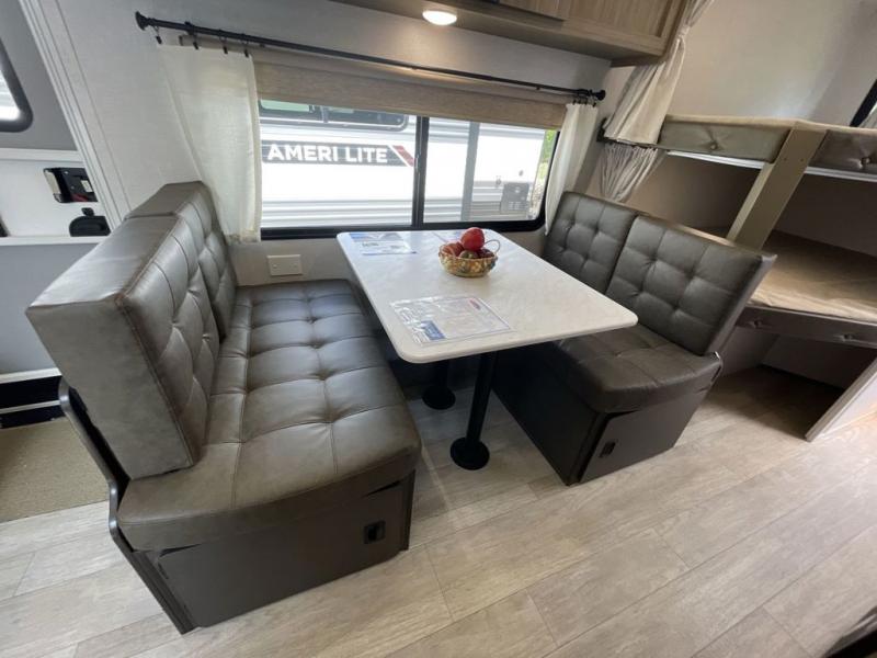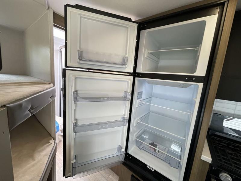 If you love to take trips to the great outdoors, you should take them in this Wildwood X-Lite travel trailer! This trailer is the perfect complement to your weekend away because it has a set of double-size bunks for your kids, yet it is still lightweight. The bathroom has a walk-in shower to help you get ready each morning, and the vanity is located just outside of the bathroom door so that someone else can use the sink at the same time that another camper is showering. The kitchen is filled with excellent amenities, like the double sink and oversized refrigerator, and you can use the booth dinette to sit down and eat any meal that you've prepared in the kitchen. You can even add an optional outside camp kitchen if you like to cook outdoors!