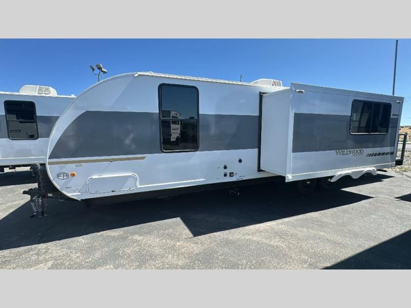 The Wildwood X-Lite travel trailers are packed with hassle-free camping amenities! There are a variety of floorplans to choose from between three different regions. The enclosed Accessibelly will help protect against the elements and debris during transport, and the exterior retro/metal redesign is sure to be eye-catching! There are stylish roller shades inside, along with updated backsplash, elegant curtain rods and curtains, plus many more interior comforts! Choose a Wildwood X-Lite travel trailer today for quality and value!