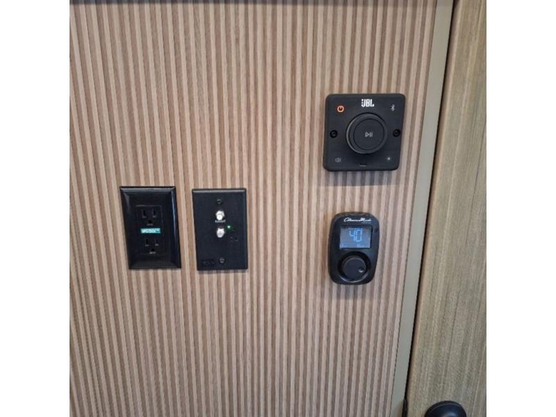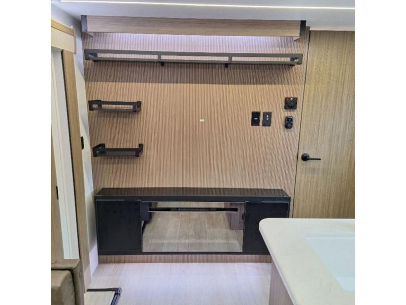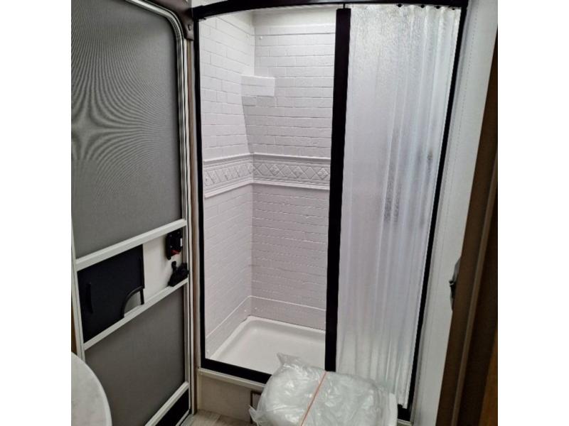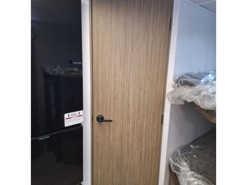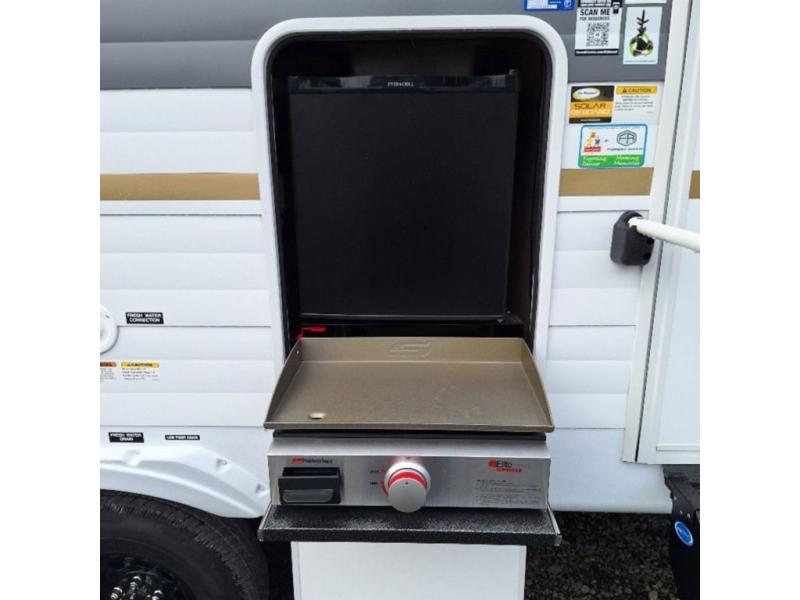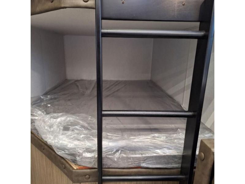 The double-size bunks pack a lot of extra sleeping space into this Wildwood X-Lite travel trailer! Some of the other comfortable features that you will find are the U-shaped dinette that has panoramic windows surrounding it, the entertainment center with an electric fireplace below, the private bedroom with a custom king bed with Versa Tilt, and the walk-in pantry that will make it easy to grab your spices and snacks. It is extremely easy to reach the bathroom from both the interior and exterior because it contains the second entry/exit door, and the oversized refrigerator in the kitchen is going to be able to hold all of the produce that your family likes to eat. You also have an 18' awning that provides a protected area to relax and enjoy nature and an exterior camp kitchen with a griddle!
