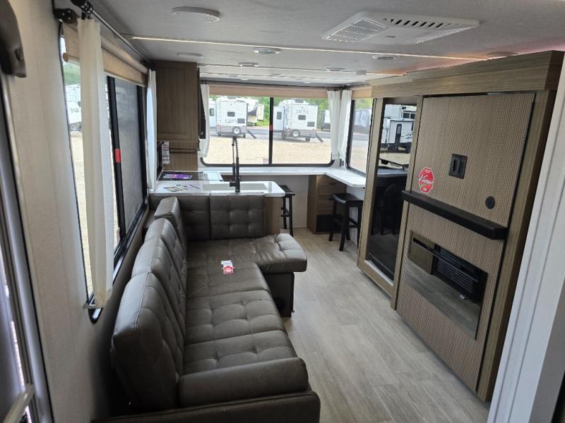 The Forest River Wildwood X-Lite travel trailers are comfortable enough to make any destination feel like home! The Wildwood X-Lite has a Dicor PVC roof membrane, a powder-coated I-beam frame, nitrogen-filled tires, and a cambered chassis as the base for all of its luxurious additions. Within the reliable construction, you will find excellent interior amenities, like the upgraded high-rise spring kitchen faucet, a huge kitchen window, a Bluetooth stereo, and upgraded designer furniture. The Wildwood X-Lite also comes with a pass-through storage compartment for your gear, an upgraded shower head, and a new 60K tankless water heater so you can have hot water when you need it!