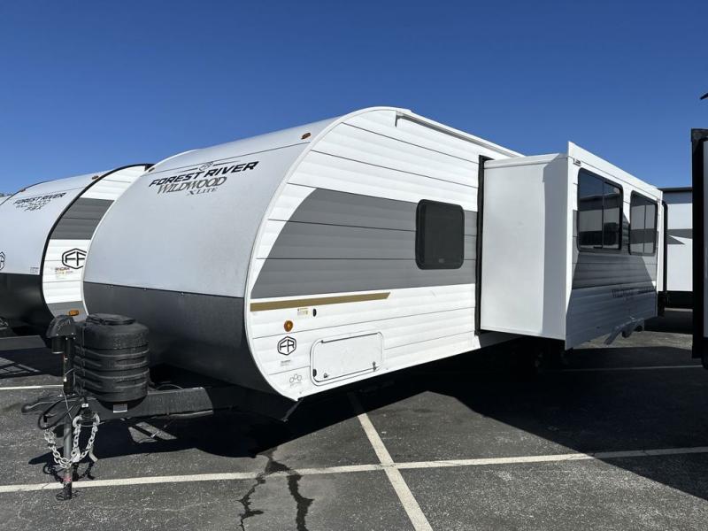 The Wildwood X-Lite travel trailers are packed with hassle-free camping amenities! There are a variety of floorplans to choose from between three different regions. The enclosed Accessibelly will help protect against the elements and debris during transport, and the exterior retro/metal redesign is sure to be eye-catching! There are stylish roller shades inside, along with updated backsplash, elegant curtain rods and curtains, plus many more interior comforts! Choose a Wildwood X-Lite travel trailer today for quality and value!