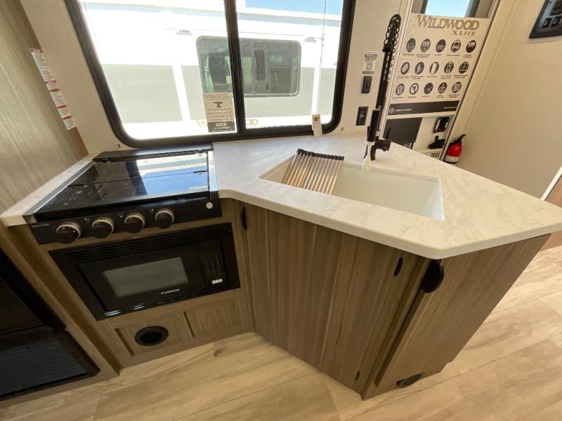The Wildwood X-Lite travel trailers are packed with hassle-free camping amenities! There are a variety of floorplans to choose from between three different regions. The enclosed Accessibelly will help protect against the elements and debris during transport, and the exterior retro/metal redesign is sure to be eye-catching! There are stylish roller shades inside, along with updated backsplash, elegant curtain rods and curtains, plus many more interior comforts! Choose a Wildwood X-Lite travel trailer today for quality and value!
