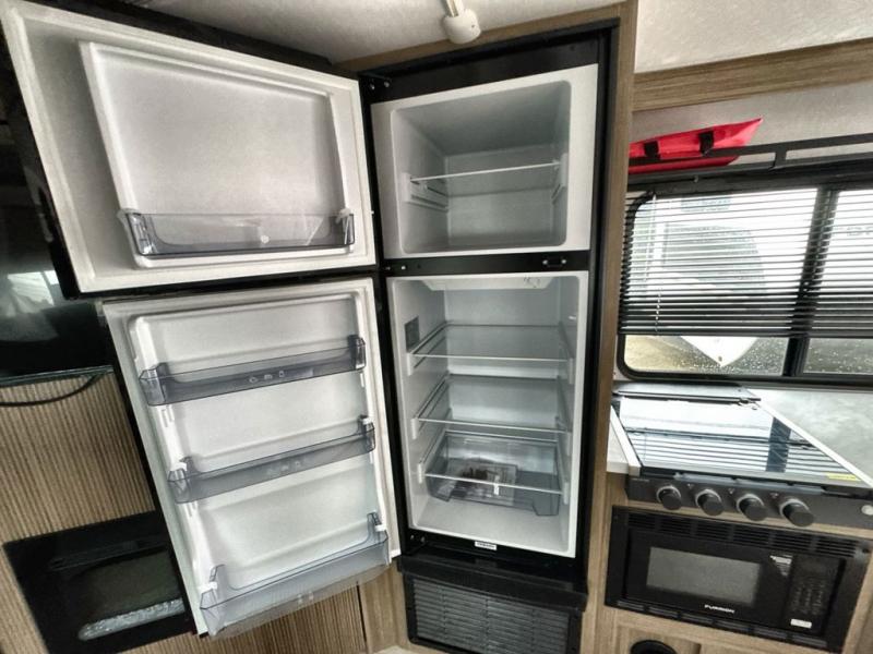 The Wildwood X-Lite travel trailers are packed with hassle-free camping amenities! There are a variety of floorplans to choose from between three different regions. The enclosed Accessibelly will help protect against the elements and debris during transport, and the exterior retro/metal redesign is sure to be eye-catching! There are stylish roller shades inside, along with updated backsplash, elegant curtain rods and curtains, plus many more interior comforts! Choose a Wildwood X-Lite travel trailer today for quality and value!