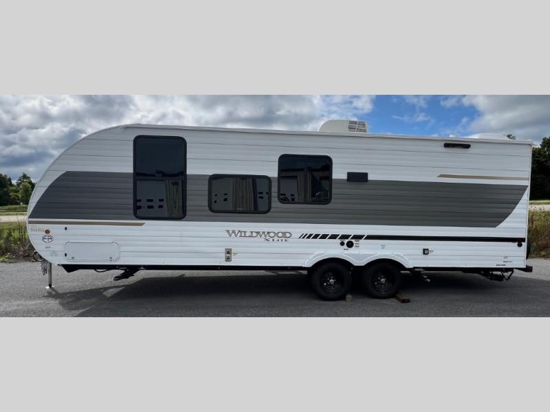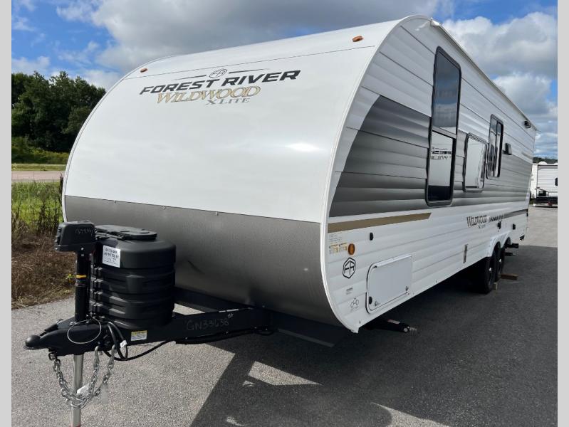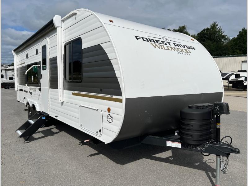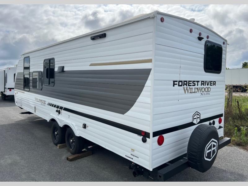 The Forest River Wildwood X-Lite travel trailers are comfortable enough to make any destination feel like home! The Wildwood X-Lite has a Dicor PVC roof membrane, a powder-coated I-beam frame, nitrogen-filled tires, and a cambered chassis as the base for all of its luxurious additions. Within the reliable construction, you will find excellent interior amenities, like the upgraded high-rise spring kitchen faucet, a huge kitchen window, a Bluetooth stereo, and upgraded designer furniture. The Wildwood X-Lite also comes with a pass-through storage compartment for your gear, an upgraded shower head, and a new 60K tankless water heater so you can have hot water when you need it!