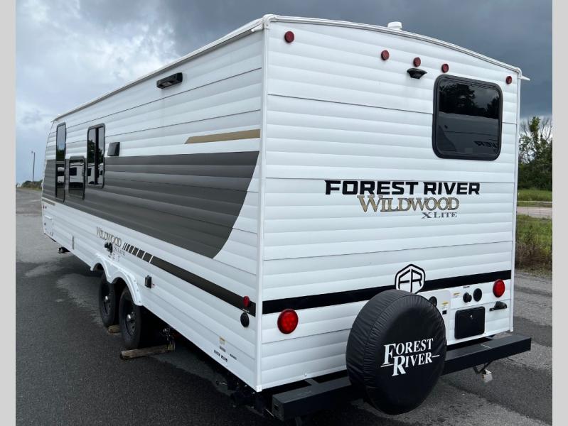 The Forest River Wildwood X-Lite travel trailers are comfortable enough to make any destination feel like home! The Wildwood X-Lite has a Dicor PVC roof membrane, a powder-coated I-beam frame, nitrogen-filled tires, and a cambered chassis as the base for all of its luxurious additions. Within the reliable construction, you will find excellent interior amenities, like the upgraded high-rise spring kitchen faucet, a huge kitchen window, a Bluetooth stereo, and upgraded designer furniture. The Wildwood X-Lite also comes with a pass-through storage compartment for your gear, an upgraded shower head, and a new 60K tankless water heater so you can have hot water when you need it!
