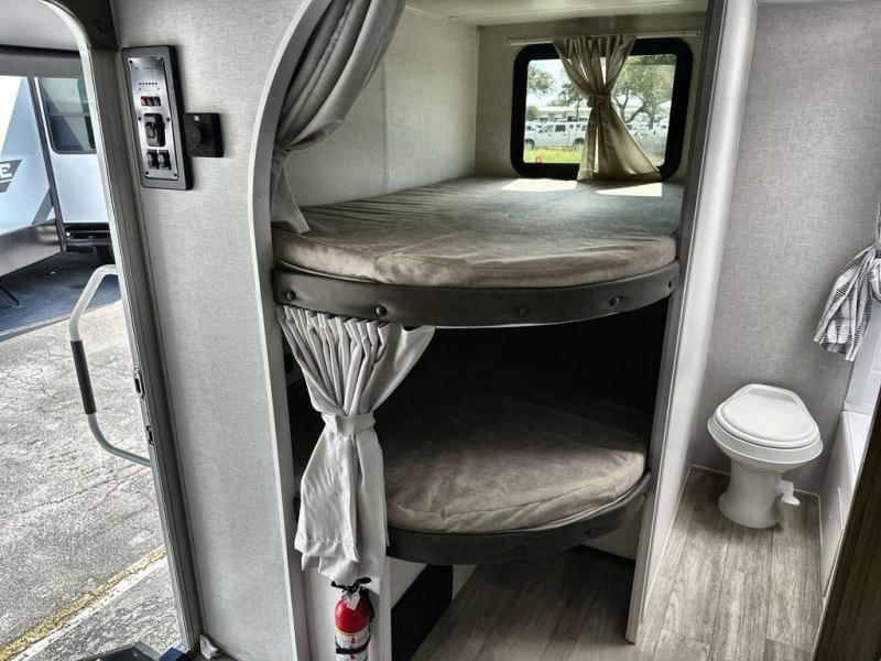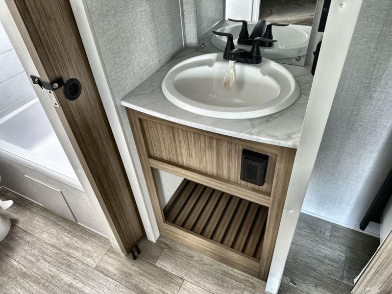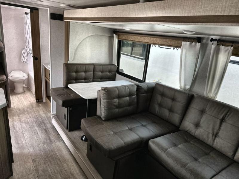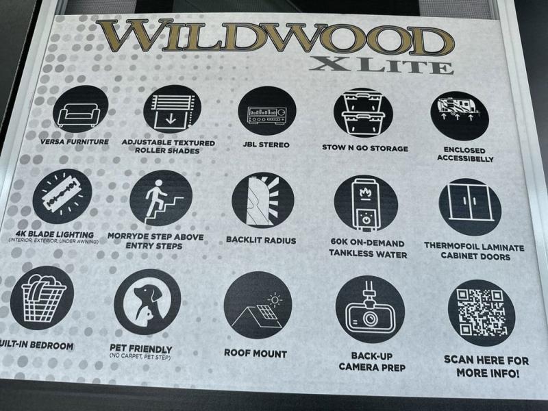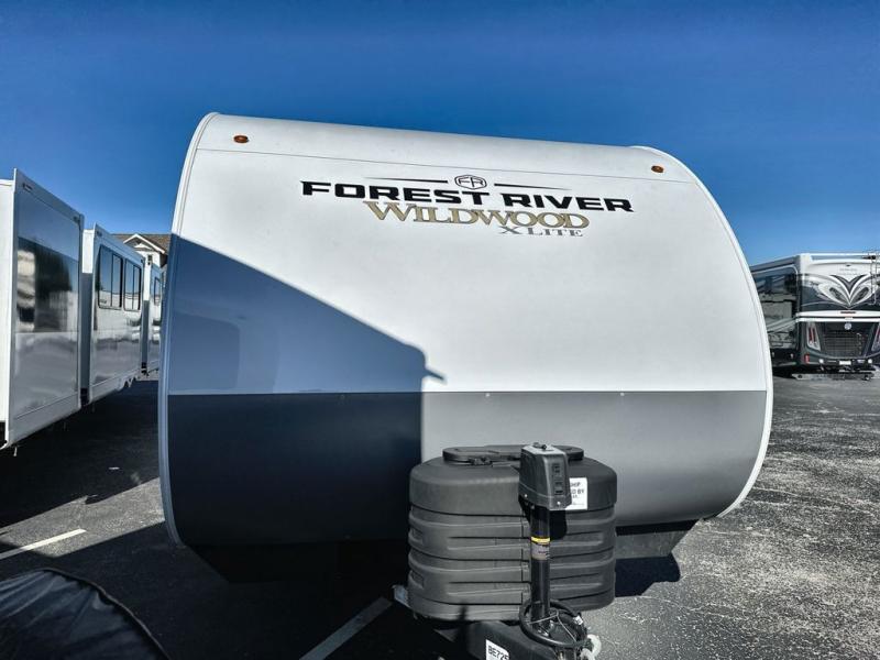 The Forest River Wildwood X-Lite travel trailers are comfortable enough to make any destination feel like home! The Wildwood X-Lite has a Dicor PVC roof membrane, a powder-coated I-beam frame, nitrogen-filled tires, and a cambered chassis as the base for all of its luxurious additions. Within the reliable construction, you will find excellent interior amenities, like the upgraded high-rise spring kitchen faucet, a huge kitchen window, a Bluetooth stereo, and upgraded designer furniture. The Wildwood X-Lite also comes with a pass-through storage compartment for your gear, an upgraded shower head, and a new 60K tankless water heater so you can have hot water when you need it!
