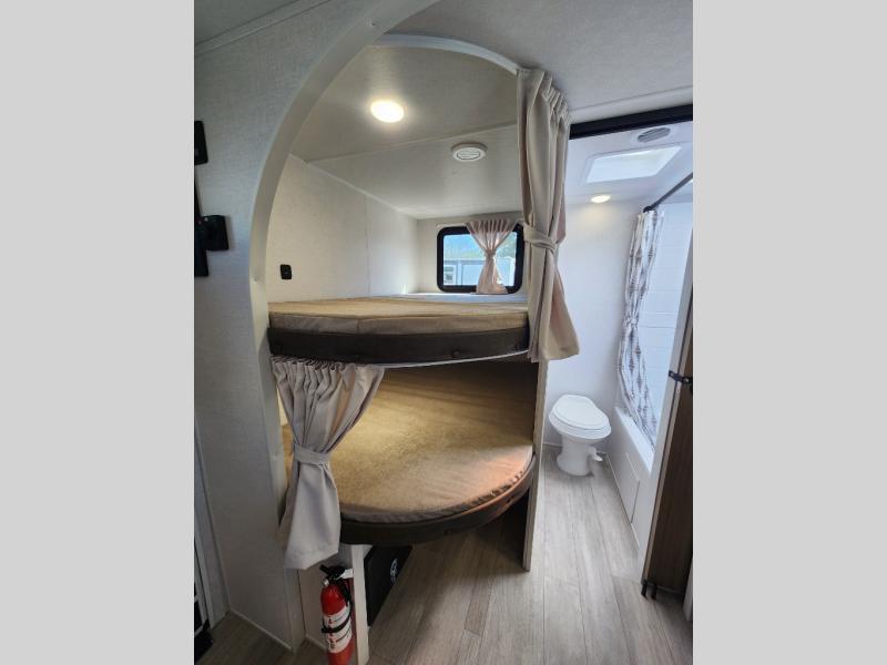 The Wildwood X-Lite travel trailers are packed with hassle-free camping amenities! There are a variety of floorplans to choose from between three different regions. The enclosed Accessibelly will help protect against the elements and debris during transport, and the exterior retro/metal redesign is sure to be eye-catching! There are stylish roller shades inside, along with updated backsplash, elegant curtain rods and curtains, plus many more interior comforts! Choose a Wildwood X-Lite travel trailer today for quality and value!