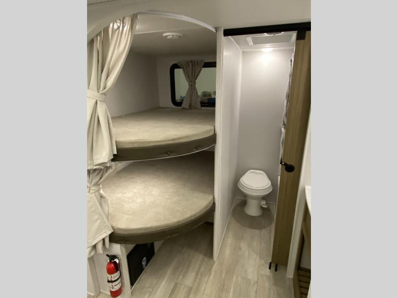 The Wildwood X-Lite travel trailers are packed with hassle-free camping amenities! There are a variety of floorplans to choose from between three different regions. The enclosed Accessibelly will help protect against the elements and debris during transport, and the exterior retro/metal redesign is sure to be eye-catching! There are stylish roller shades inside, along with updated backsplash, elegant curtain rods and curtains, plus many more interior comforts! Choose a Wildwood X-Lite travel trailer today for quality and value!