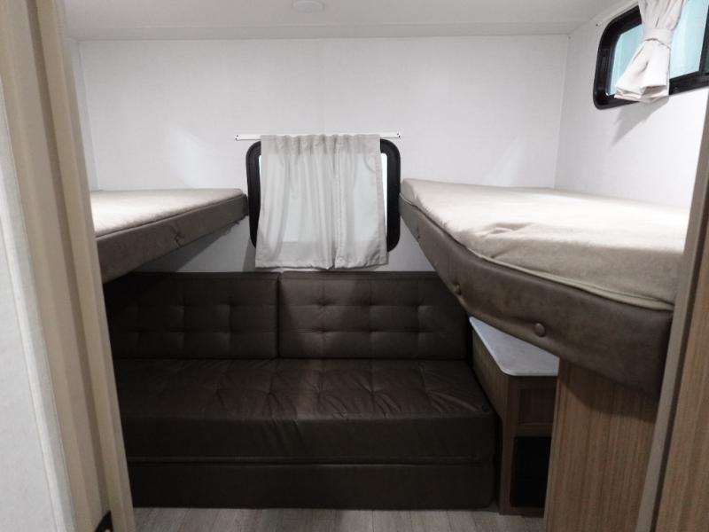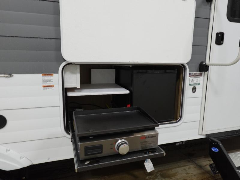 You can do so much with this Wildwood X-Lite travel trailer because it has a Versa Lounge in the main living area, and Versa-bunks plus a Versa-queen sofa in the private bunkhouse! These pieces of furniture provide you with versatility while you travel so that your trailer can best fit your lifestyle. The kitchen is completely outfitted with excellent tools to make all of your meals delicious, and the full bathroom offers you a walk-in shower for the most convenience. The exterior portion of this trailer is complete with a 16' awning and exterior speakers, and it is even more accommodating with the outdoor kitchen with a griddle.