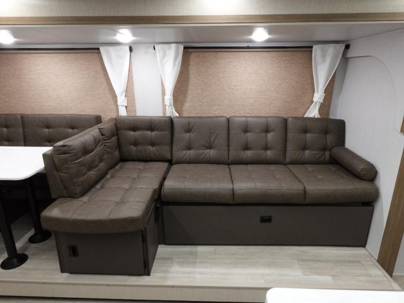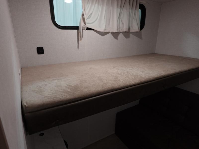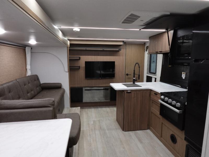 The Wildwood X-Lite travel trailers are packed with hassle-free camping amenities! The enclosed Accessibelly will help protect against the elements and debris during transport, and the exterior retro/metal redesign is sure to be eye-catching! There are stylish roller shades inside, along with updated backsplash, elegant curtain rods and curtains, plus many more interior comforts! Choose a Wildwood X-Lite travel trailer today for quality and value!