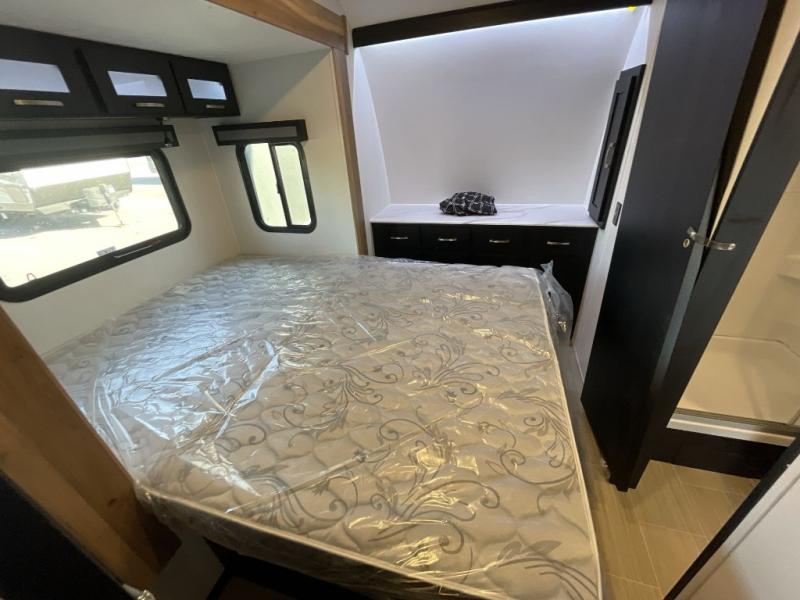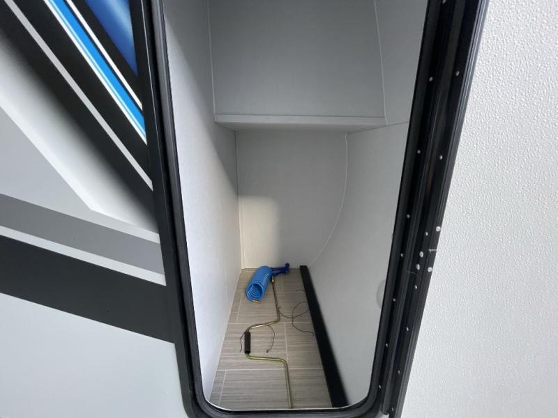 Each Work and Play toy hauler by Forest River is built tough with a mega rail powder coated chassis, a one-piece Tufflex PVC roof membrane, and a fiberglass front cap with rock guard. You will find many convenient features, such as a Winegard Air 360 and TV antenna, an outside spray port, and slam latch door catches to store your riding gear. These toy haulers also include hidden hinge cabinets and doors, USB charging ports in multiple locations, a tankless water heater, plus many more amenities!