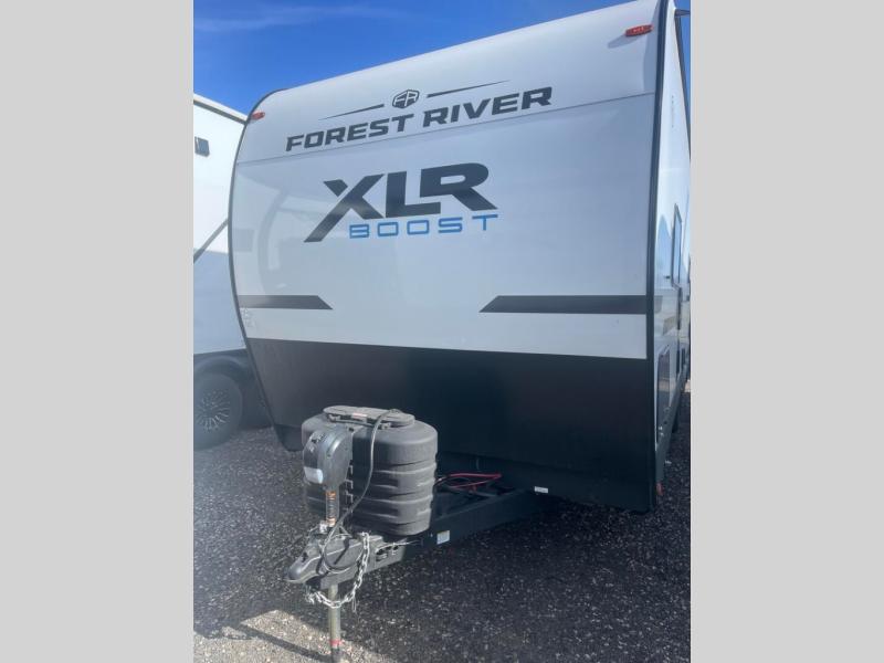Boost into action camping with one of these Forest River XLR Boost fifth wheel toy haulers or travel trailer toy haulers! The 8' 5" wide body design not only provides ample interior space, but also packs in all of the luxurious features to make your trips great. There is fiberglass flooring insulation, a 35K BTU furnace and built-in vents within the mandatory Climate Comfort Package so you can camp all year around. The Convenience Package is also mandatory, and includes a tankless water heater, a French door black refrigerator and more features to make each trip accommodating. You will love the decorative kitchen backsplash inside, as well as a residential style kitchen faucet, a bath vent fan, and a USB charging station to keep your electronics charged and ready to go.