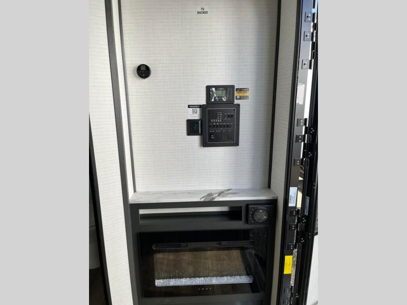 This toy hauler with a 14' 6" garage is sure to meet all your camping needs! Once you unload using the 3,000 lb. capacity ramp door, you can enjoy the 1,500 lb. capacity patio deck and enjoy a cold drink. There is seating space on the dual gaucho sofas with a table in between, and your guests can sleep on the queen-size Euro bed lift above. A full kitchen lets you cook meals each day, and the fireplace will make your space feel more like home. There is a walk-thru bath that leads to the front master bedroom where you'll find an RV queen bed, dual wardrobes and nightstands plus a closet to keep clothes wrinkle-free!