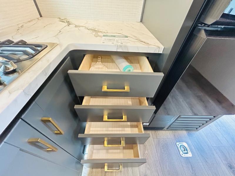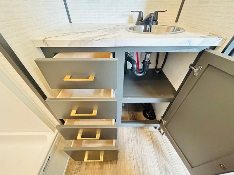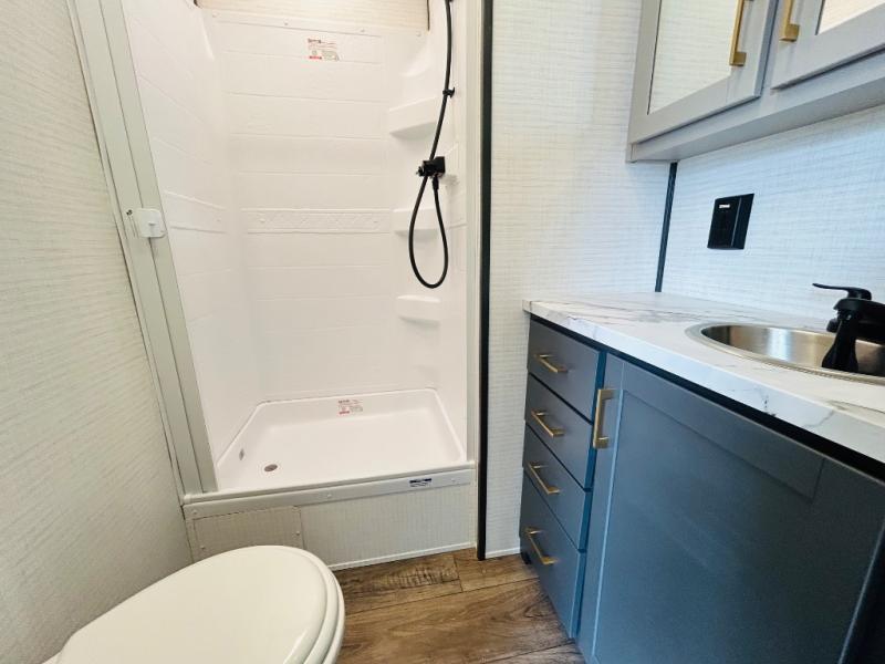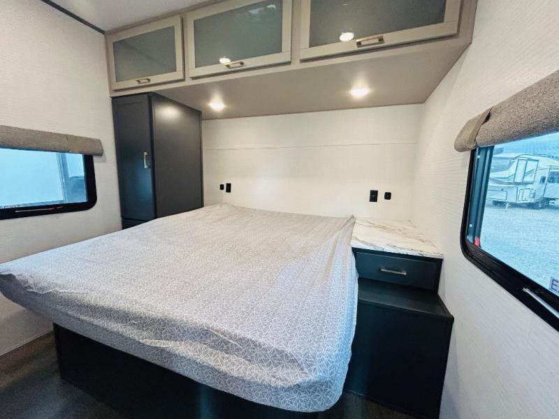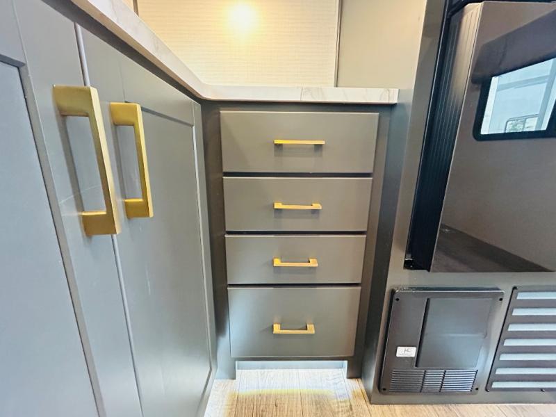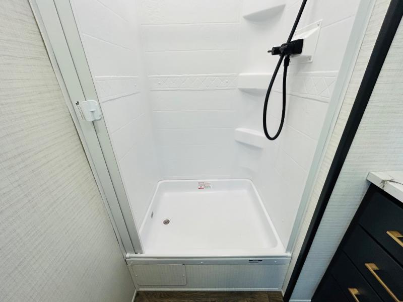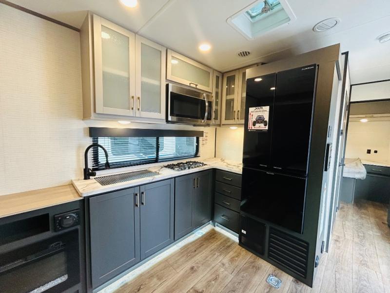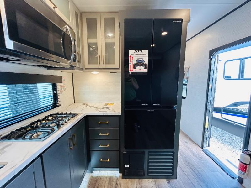 Boost into action camping with one of these Forest River XLR Boost fifth wheel toy haulers or travel trailer toy haulers! The 8' 5" wide body design not only provides ample interior space, but also packs in all of the luxurious features to make your trips great. There is fiberglass flooring insulation, a 35K BTU furnace and built-in vents within the mandatory Climate Comfort Package so you can camp all year around. The Convenience Package is also mandatory, and includes a tankless water heater, a French door black refrigerator and more features to make each trip accommodating. You will love the decorative kitchen backsplash inside, as well as a residential style kitchen faucet, a bath vent fan, and a USB charging station to keep your electronics charged and ready to go.