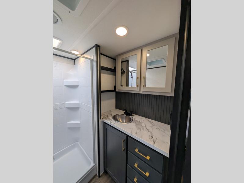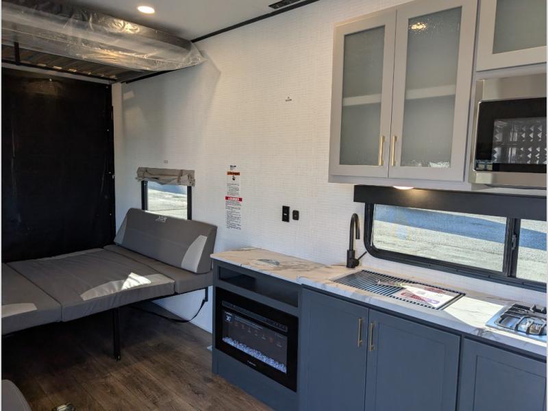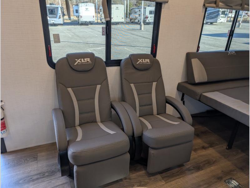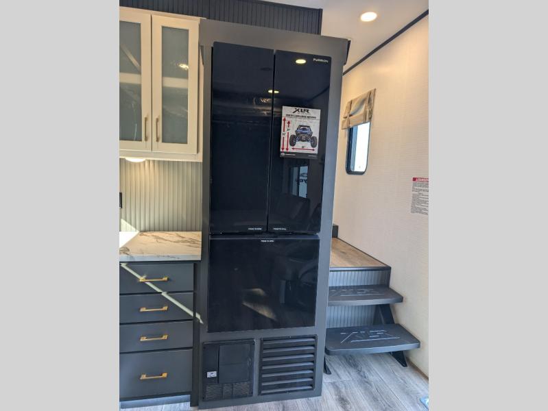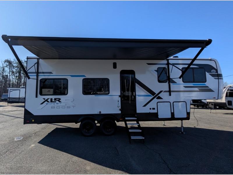 Boost into action camping with one of these Forest River XLR Boost fifth wheel toy haulers or travel trailer toy haulers! The 8' 5" wide body design not only provides ample interior space, but also packs in all of the luxurious features to make your trips great. There is fiberglass flooring insulation, a 35K BTU furnace and built-in vents within the mandatory Climate Comfort Package so you can camp all year around. The Convenience Package is also mandatory, and includes a tankless water heater, a French door black refrigerator and more features to make each trip accommodating. You will love the decorative kitchen backsplash inside, as well as a residential style kitchen faucet, a bath vent fan, and a USB charging station to keep your electronics charged and ready to go.