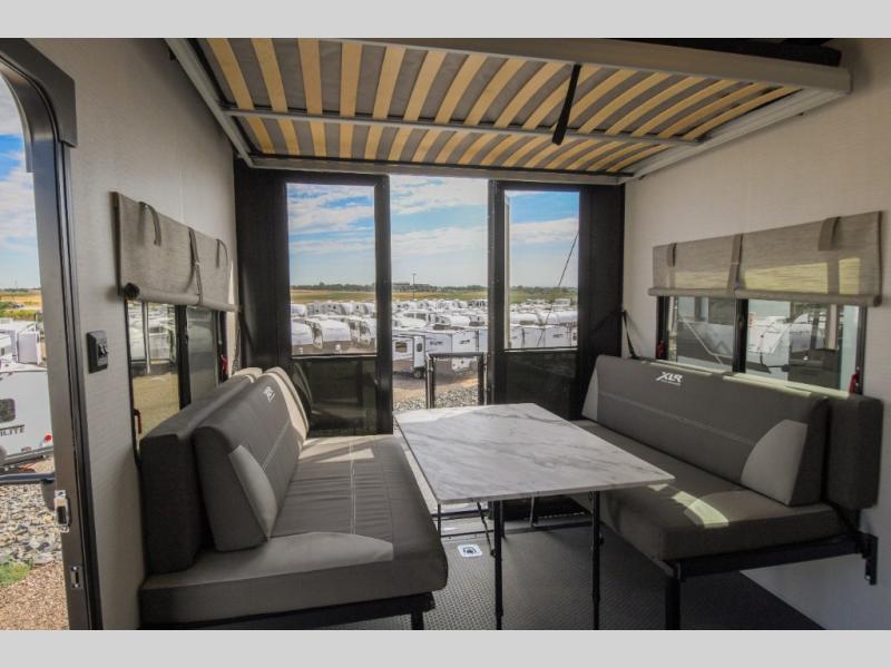 Boost into action camping with one of these Forest River XLR Boost fifth wheel toy haulers or travel trailer toy haulers! The 8' 6" wide body design not only provides ample interior space, but also packs in all of the luxurious features to make your trips great. There is Freon rigid urethane spray foam roof insulation and sidewall construction, along with fiberglass flooring insulation, and roof attic vents within the mandatory Climate Comfort Package so you can camp all year around. The Convenience Package is also mandatory, and includes a tankless water heater, back up camera prep, a 15K BTU main roof A/C, and more features to make each trip accommodating. You will love the decorative vinyl flooring and decorative kitchen backsplash included in the REV Package, as well as a residential style kitchen faucet, a large bath vent fan, and industrial garage flooring that will withstand your many adventures. A Renewable Energy Package includes a 200W roof mounted solar panel for off-grid capabilities, and there is an external fuel cell with a pump that will keep your toys ready to go!