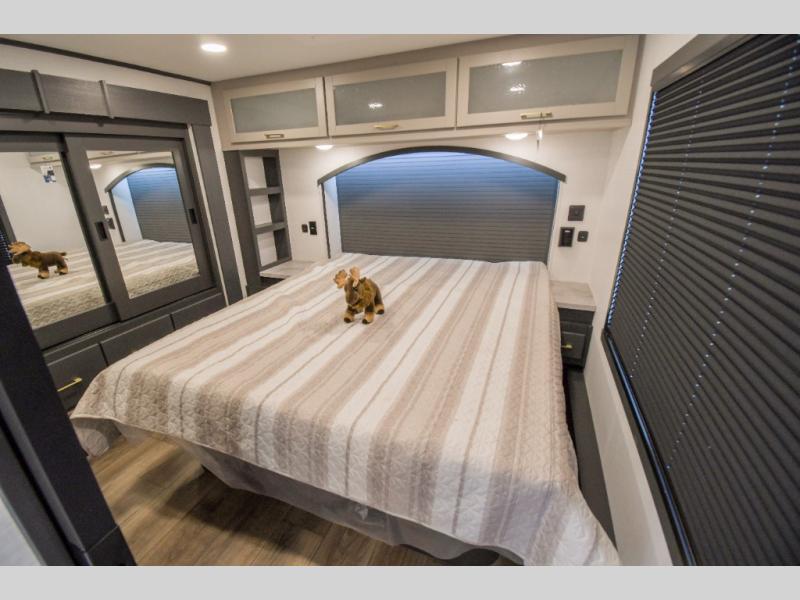 The outdoor enthusiasts has met their match with the XLR Nitro toy haulers by Forest River. The vacuum-bonded aluminum framed sidewalls, gel-coat fiberglass exterior, and singular roof membrane are just a few durable construction materials you will find on these models. There is a weatherproof insulated ramp door, 5,000 lb. cargo tie-downs, a 40 gallon fuel station, and more convenient garage features that will make camping with toys easier than ever. You'll appreciate smooth towing thanks to the MORryde CRE3000 suspension enhancement and 16" Goodyear Endurance tires. A 200 watt roof-mounted solar panel also comes standard, along with electric awning(s) with LED lights, undercarriage lighting, and friction hinge entry door(s). Some of the innovative technology features include a Winegard Air 360 antenna with WiFi prep and 4G LTE, convenient USB charging stations, and a Gear Guardian wireless camera for inside the garage to help keep your gear secure. You will also find diamonds solid surface kitchen countertops, Luna Quartz bathroom countertops, hardwood cabinet doors, stylish window trim package, and many more interior comforts.