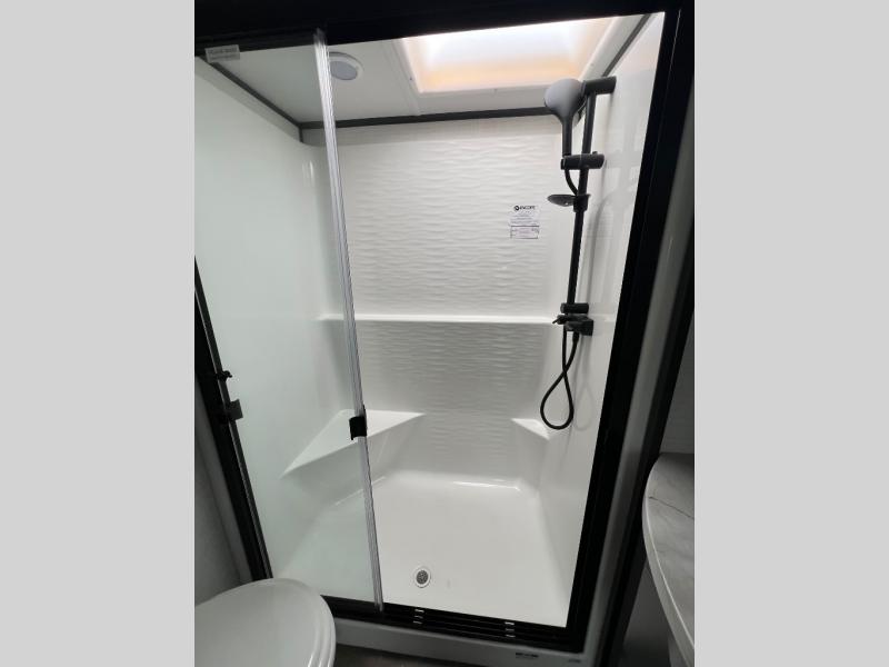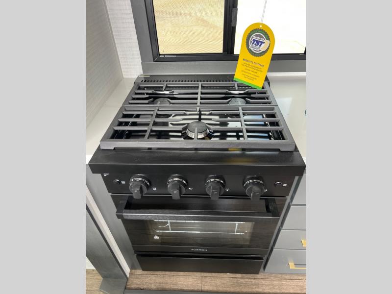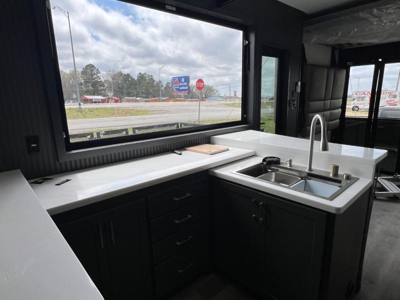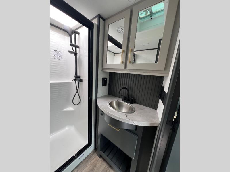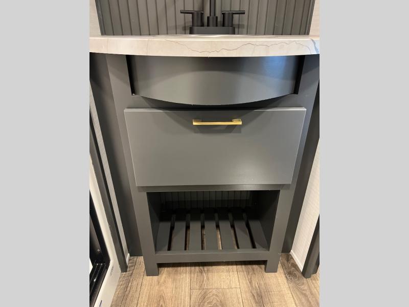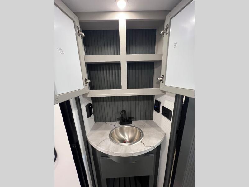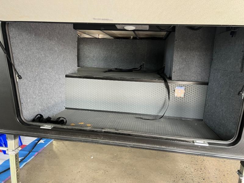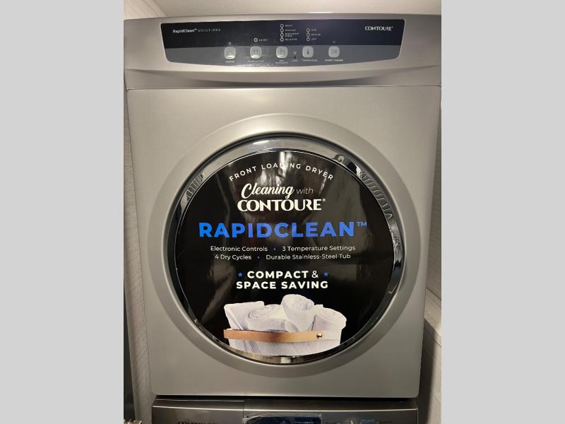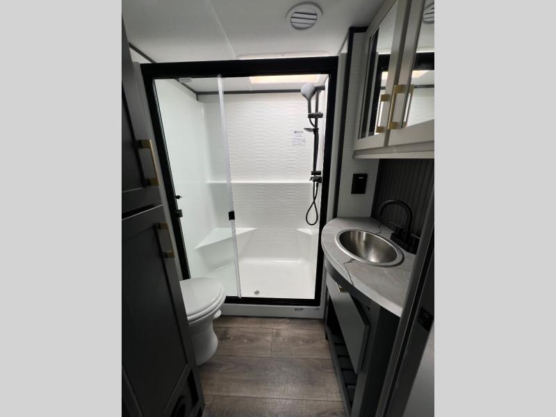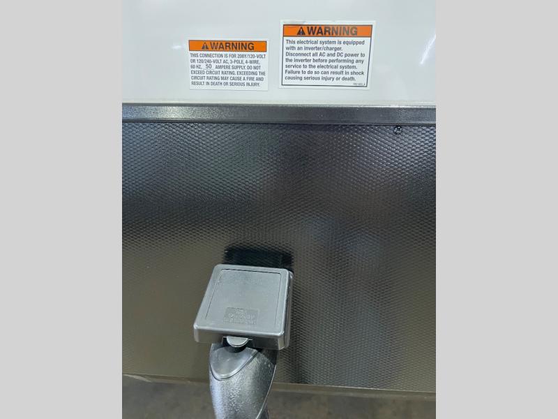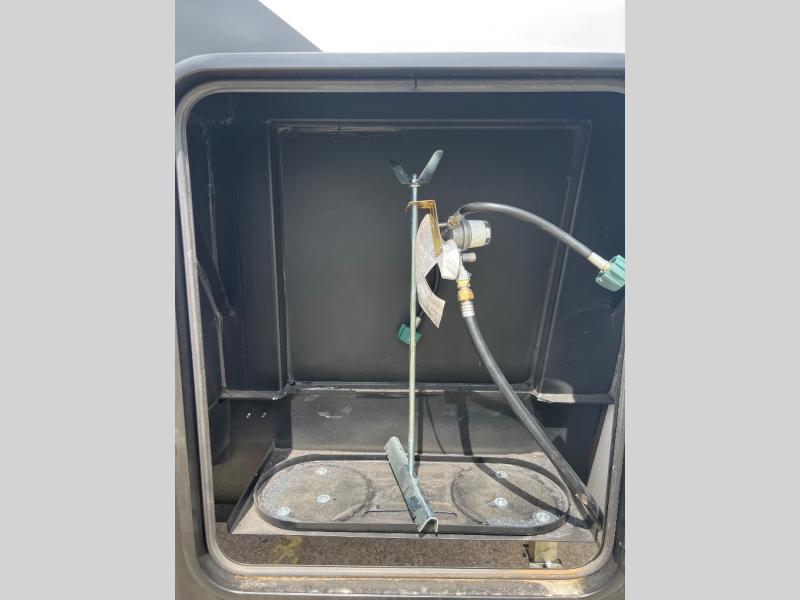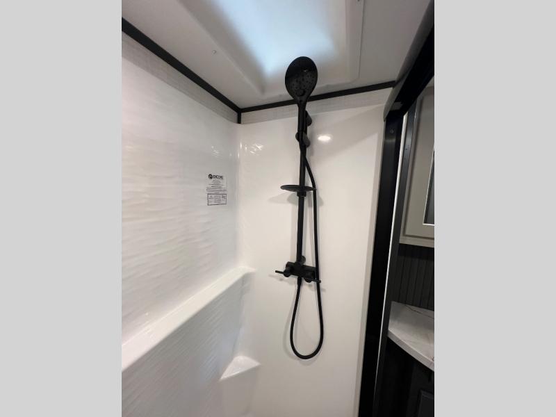 It's easy to see why this model was voted 2025 Top Innovation by RV Business! Once you arrive at your destination, you can unload your toys from the 13' garage, then relax on the dual gaucho sofas with a removable dinette table in between. There is also a queen-size Euro bed above the sofa where guests can sleep. Everyone will love to visit on the side patio that features a flip-down bar top and a window that looks into the kitchen. There are also bar stools here and inside at the counter so everyone has a seat. If the weather isn't cooperating, you can relax on the L-shaped sofa in the main living area, and there is a 55" TV with a hidden pantry behind for snacks! A spacious full bath will let everyone freshen up after trail riding, and you'll love having your own bedroom up front. Here, you'll find a king bed slide out, a wardrobe, dresser, plus washer and dryer prep if you choose to add those appliances!