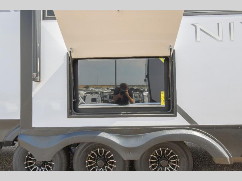 The outdoor enthusiasts has met their match with the XLR Nitro toy haulers by Forest River. The vacuum-bonded aluminum framed sidewalls, gel-coat fiberglass exterior, and singular roof membrane are just a few durable construction materials you will find on these models. There is a weatherproof insulated ramp door, 5,000 lb. cargo tie-downs, a 40 gallon fuel station, and more convenient garage features that will make camping with toys easier than ever. You'll appreciate smooth towing thanks to the MORryde CRE3000 suspension enhancement and 16" Goodyear Endurance tires. A 200 watt roof-mounted solar panel also comes standard, along with electric awning(s) with LED lights, undercarriage lighting, and friction hinge entry door(s). Some of the innovative technology features include a Winegard Air 360 antenna with WiFi prep and 4G LTE, convenient USB charging stations, and a Gear Guardian wireless camera for inside the garage to help keep your gear secure. You will also find diamonds solid surface kitchen countertops, Luna Quartz bathroom countertops, hardwood cabinet doors, stylish window trim package, and many more interior comforts.