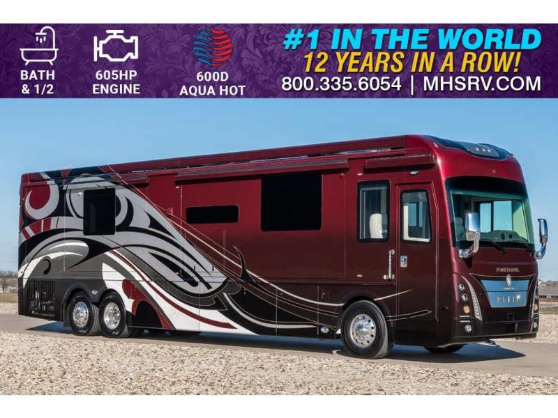 M.S.R.P. $1,675,500 - The 2025 Foretravel Realm Presidential takes the luxury motor coach market to all new heights and further propels the legacy of Foretravel. The Foretravel Realm stands alone as the finest motor coach of its kind available on the market today. It rides on Spartan's Premier K4 chassis, that is exclusive to Foretravel, offering incomparable ride, handling, and safety. This extraordinary motor coach is the Luxury Villa Master Suite (LVMS) floor plan with the unmistakable Majesty interior décor package that is paired perfectly with the all-new Legionnaire exterior paint scheme that can only be found on the Realm Presidential Series. The LVMS is unlike any luxury motor coach in the world; offering multiple living & dining accommodations highlighted by the dual power-adjustable dinette tables and extra-large curved lounger and a master suite arrangement unlike any other. You will find spacious wardrobes, a lavish custom-built vanity, and a chair that doubles as a workstation, extra-large nightstands, convenient washer/dryer to closet accessibility, and exceptional storage throughout this one-of-a-kind floor plan. You will also find a true flat floor design throughout the Realm Presidential Series including, not only Foretravel's premium flat floor slide-out rooms but also the bedroom to master bath transition. The Presidential Series also boasts a 600D Aqua Hot Hydronic Heating system. You will find the premier Valid digital dash with VDC control, along with the Valid air ride suspension, electronic suspension control with self-leveling feature, driver and passenger coach monitors, tire pressure sensors, beautiful full tile floors and back-splashes, ultra-high-end quartz counter tops throughout, premium brand refrigerator and convection microwave, LED accent lighting throughout, a beautiful curved entry way step, Executive entrance steps, a designer entry door with LED accent lighting, 4K QLED TVs where applicable, upgraded cab stereo and sub-woofer, heated and cooled leather pilot and co-pilot seats, recessed and upgraded ceiling features in the galley and bedroom, recessed cook top, an 8-camera system including 6 perimeter 360 Delta Mobile cameras for the ultimate in coach visibility, dual integrated power awnings, power entry door awning, exterior entertainment center, (2) electric sliding cargo trays, exterior freezer, full coach and multi-color LED ground effect lighting package, unmistakable full body paint exterior with Armor-Coat sprayed protection below windshield, chrome grill and accent package, (2) 3000 watt inverters, Gold Heat floor tile heating system, solar panel package, dishwasher drawer, 5.1 surround sound in living room and StarLink antenna. The Spartan K4 chassis is not only massive in stature but boasts a best-in-class Independent Front Suspension system, a passive steering rear tag axle for incomparable handling and maneuverability as well as the Performance Choice® anti-roll bar with selectable drive modes, and automatic traction control. You will know instantly, once behind the wheel of a Realm, that this chassis is truly a cut above all other luxury motor coach chassis. It is powered by a Cummins 605HP diesel. You will also find additional advanced safety features on a Realm like a fire suppression system for the engine, Tyron Bead-Lock wheel safety bands, and steel construction rather than aluminum found in the competition. You will also enjoy the ultimate in slide-out room fit and finish. These slides are undoubtedly head and shoulders above the competition. They feature pneumatic seals that provide a literal airtight seal completely around the entire slide-out room regardless of slide position for the premium in fit, finish, and function. They also feature a power drop-down flooring system that gives the Realm not only a flat-floor when extended, but a true flat-floor when retracted as well. (No uneven floor surfaces, damaging rollers, poorly sealed rubber gaskets, etc.) The Realm also features a flat floor bedroom to master bath transition. You won't find that in the competition; Nor will you find a *3-YEAR or 50K MILE SPARTAN NO-COST MAINTENANCE PLAN INCLUDED - (A Realm Exclusive) and a *2-YEAR or 24K MILE LIMITED WARRANTY. For more details contact Motor Home Specialist today. REALM, by definition, is a royal kingdom; a domain within which anything may occur, prevail, or dominate. The Realm of Dreams is here and available at Motor Home Specialist, the #1 Volume Selling Motor Home Dealership in the World. Visit MHSRV.com or call 800-335-6054 for complete details, photos, videos, brochures, and more. The Foretravel Realm Presidential Series... Your Kingdom Awaits. 2025 REALM PRESIDENTIAL EXCLUSIVES: • Rear Cap with Stainless Accents and Linier Taillights • Illuminated Logo Badge on Front Cap • Black Octane Wheels with Matching Black Accents • Presidential Badging • LED Rail Light Kits on Driver Side Awning Shells • Paint Graphics Running through Awning Shells and Slide Toppers • LED Accents on Bottom of all Slide Rooms • Breakaway Side Mounted Mirrors • Cameras Displayed on Digital Glass Dash • Ability to Display Cameras on TV’s • Knoedler Air Ride Pilot Seat with Swivel Base, Heat, Cool and Massage Feature (With Haptic Warning System) • Silverleaf Rozie Controller to Check on the Coach While Away • 18 Bottle Wine Chiller (Excludes LV3 FP) • HeadHunter Mach 5 120v Water Pump • Handcrafted Laminate Cabinetry with Presidential Series Designed Interiors • Frameless Residential Shower Door • Infinity Light Box in Ceiling Recess • 3-Form Art Inserts on Pocket Doors and Half Bath Door • Ability to Dump Tanks from Inside the Coach • Pneumatic Pocket Doors (Single Door Only) • Kitchen Window Above Countertop • Closet Cabinets Next to Dresser with Four Drawers at Bottom (Floorplan Dependent) • Illuminated Closet Rods • Motorized Luxury King Size Mattress • Aqua Hot Hydronic Heating 600D • Quick Acc