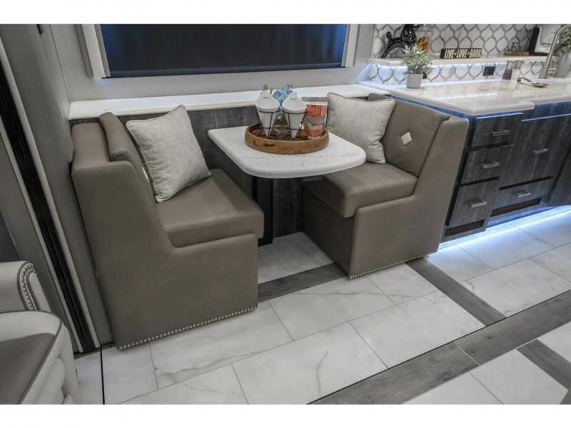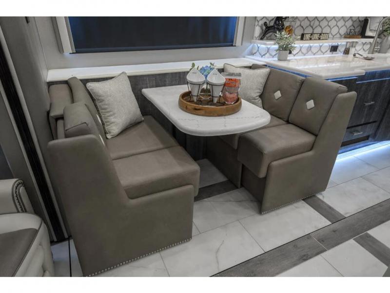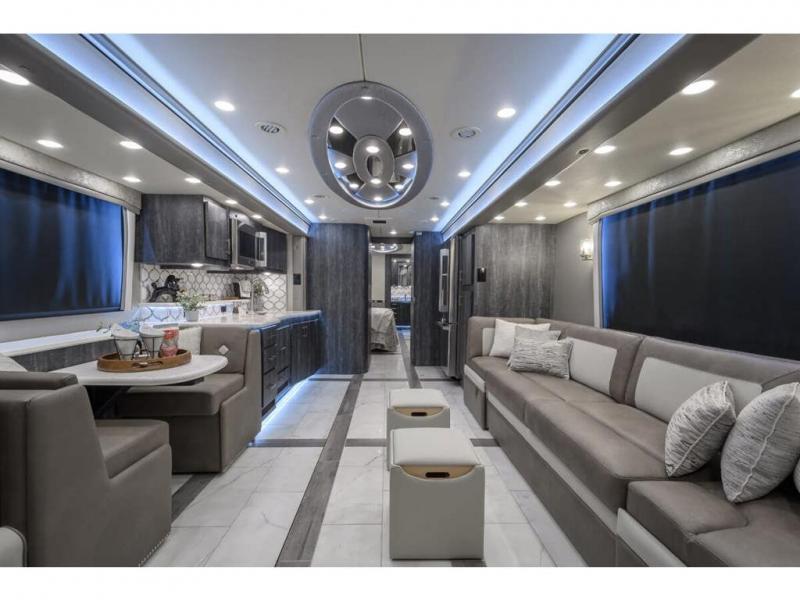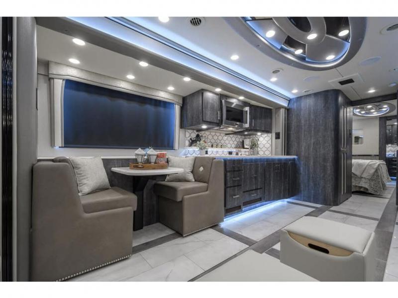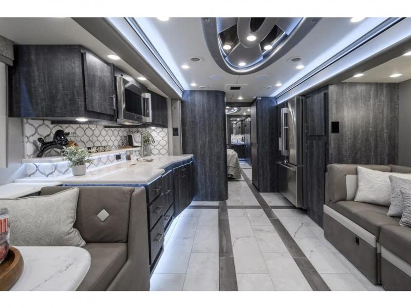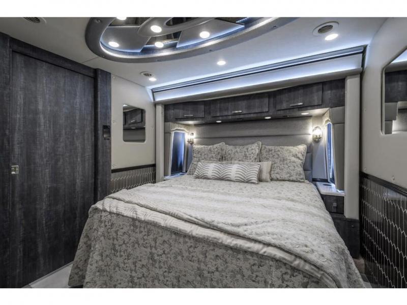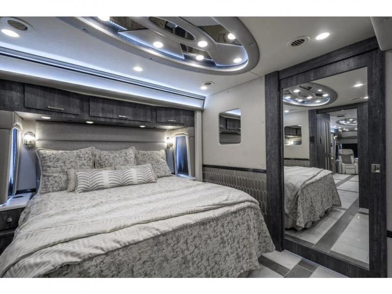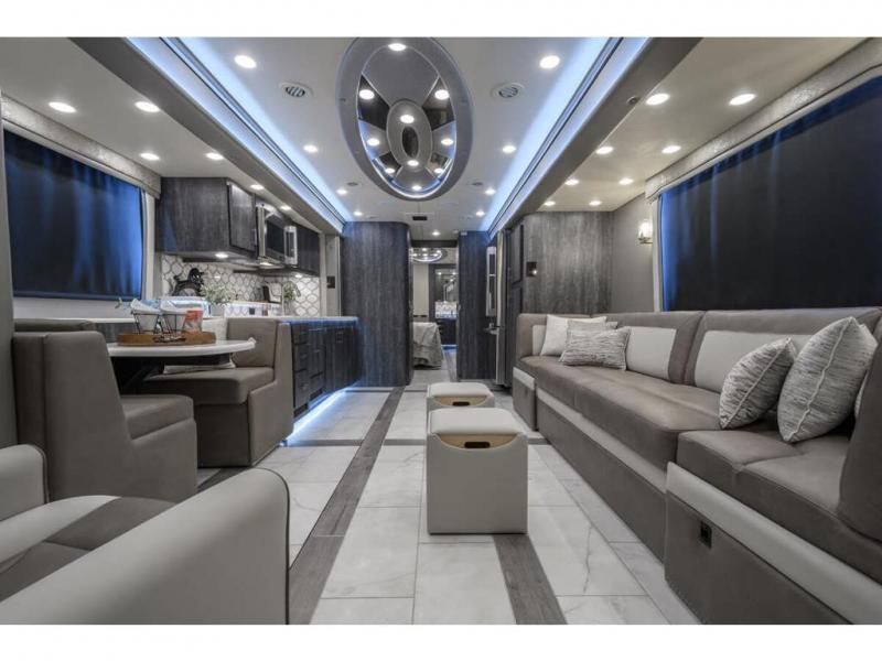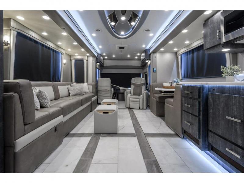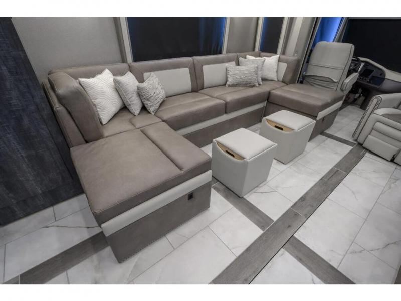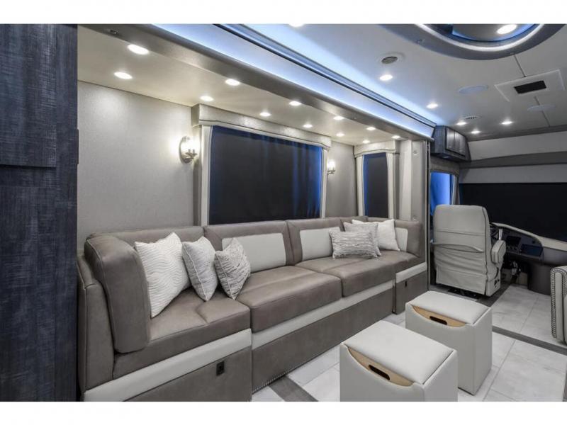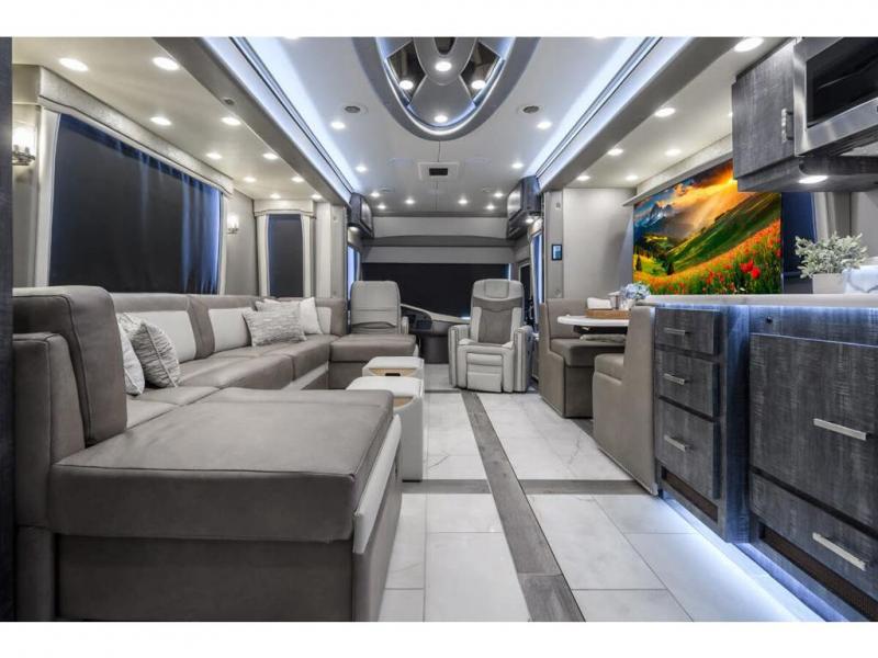 M.S.R.P. $1,577,730. The 2025 Foretravel Realm FS605 is, not only, the premium luxury Motorcoach on the market today, but the only coach in the industry built on Spartan's Premier K4 chassis offering incomparable ride, handling, and safety. This extraordinary motor coach is the Luxury Villa 2 (LV2) floor plan with the all-new Excalibur interior décor package featuring upgraded laminate cabinetry, intricate tile work, gorgeous counter-tops, and high-end fixtures throughout. The Excalibur décor of the coach is paired perfectly with the powerful, yet beautiful Zeus exterior paint scheme. The LV2 is highlighted by a curbside dinette; extra-large sofa with recliners; large SMART TV with power lift; a stack washer/dryer; a luxurious master bedroom with second power lift SMART TV; and an incredible, residential designed master bath with huge custom tile shower, beautiful dual sink basins, large pull-out medicine cabinet, private water closet, as well as a large master linen & wardrobe closet. You will also find the premier Valid digital dash with VDC control along with the Valid air ride suspension, a navigation system with in-dash and additional passenger side monitor, tire pressure sensors, beautiful tile floors and back-splashes, quartz counter tops throughout, ultra-high-end appliances, LED accent lighting throughout, a beautiful curved entry way, extra heavy duty power entrance step, a designer entry door with LED accent lighting, upgraded cab stereo and sub-woofer, heated and cooled pilot and co-pilot seats, recessed and upgraded ceiling features in the galley, recessed cook top, Mobile Eye 8 Collision Avoidance System, a "Bird's Eye View" camera system for the ultimate in coach visibility along with an additional camera system, dual integrated power awnings, power entry door awning, exterior entertainment center, (2) electric sliding cargo trays, exterior freezer, full coach and multi-color LED ground effect lighting package, Xtreme-Schemes full body paint exterior with Armor-Coat sprayed protection below windshield, grill and accent package, (2) 3000 watt inverters, electric floor heat, solar panels, dishwasher drawer, satellite and WiFi Ranger. The Realm FS6 rides exclusively on the exclusive Spartan® K4 chassis. The K4 is not only massive in stature but boasts a best-in-class Independent Front Suspension, a passive steering rear tag axle for incomparable handling and maneuverability as well as the Performance Choice® anti-sway bar with selectable drive modes, and automatic traction control. You will know instantly, once behind the wheel of a Realm FS605, that this chassis is truly a cut above all other luxury motor coach chassis. It is powered by a Cummins X15 605HP diesel. You will also find additional advanced safety features on a Realm FS605 including a fire suppression system for the engine, Tyron Bead-Lock wheel safety bands, and steel construction rather than an aluminum cage found in the competition. You will also enjoy the ultimate in slide-out room fit and finish. These slides are undoubtedly head and shoulders above the competition. They feature pneumatic seals that provide a literal airtight seal completely around the entire slide-out room regardless of slide position for the premium in fit, finish, and function. They also feature a power drop-down flooring system that gives the Realm not only a flat floor when extended, but a true flat floor when retracted as well. (No uneven floor surfaces, damaging rollers, poorly sealed rubber gaskets, etc.) The Realm also features a flat floor bedroom to master bath transition. You won't find that in the competition; Nor will you find a *3-YEAR or 50K MILE SPARTAN NO-COST MAINTENANCE PLAN INCLUDED - (A Realm Exclusive) and a *2-YEAR or 24K MILE LIMITED WARRANTY. For more details contact Motor Home Specialist today. - Realm, by definition, is a royal kingdom; a domain within which anything may occur, prevail, or dominate. The Realm of Dreams is here and available exclusively at Motor Home Specialist, the #1 Volume Selling Motor Home Dealership in the World. Visit MHSRV.com or call 800-335-6054 for complete details, photos, videos, brochures, and more. The Foretravel Realm FS605... Your Kingdom Awaits.